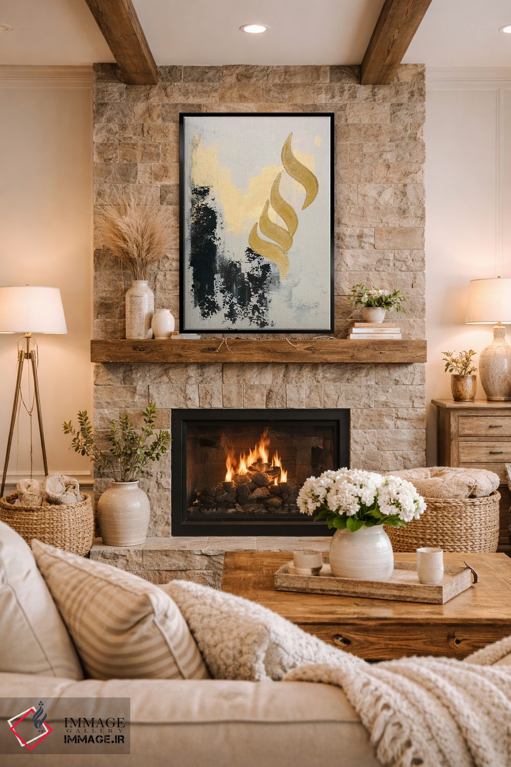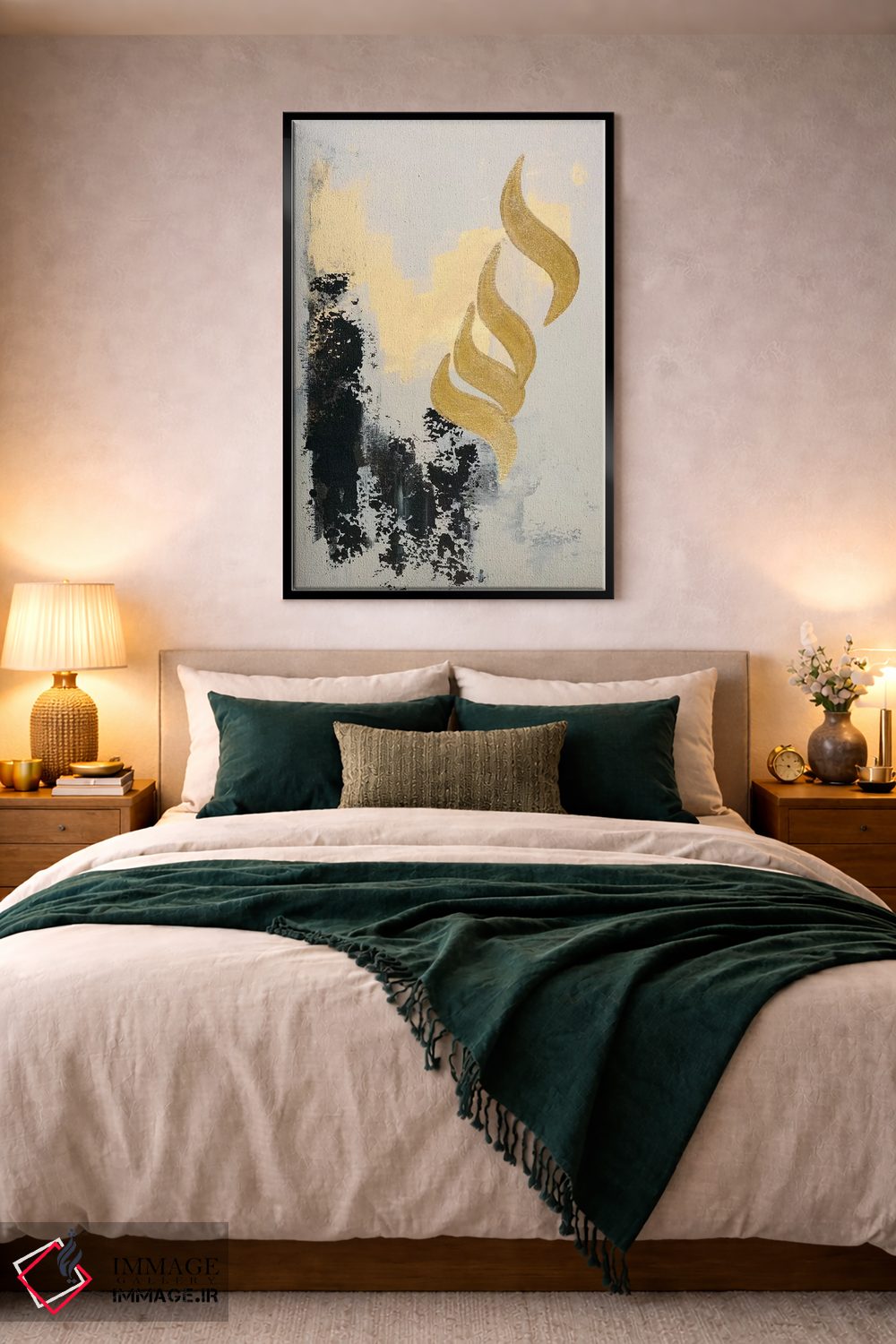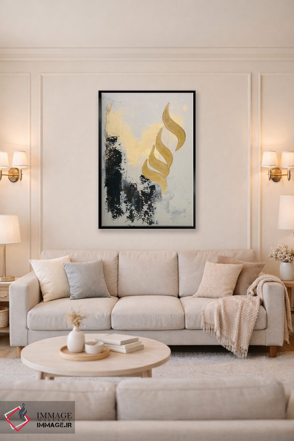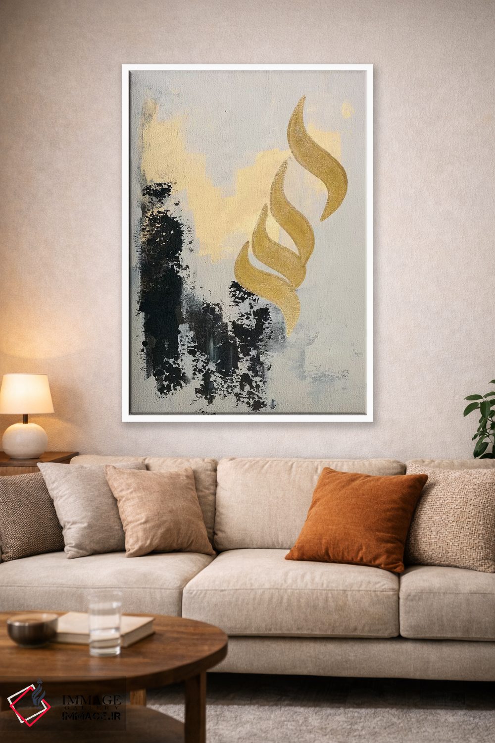 براساس پالت گرم اثر، قاب بلوط روشن (چوبی) پیشنهاد اول است و استخوانی ملایم مکمل. برای سفارشهای پروژهای با ابعاد و قابهای اختصاصی با ایماژ در تماس باشید.