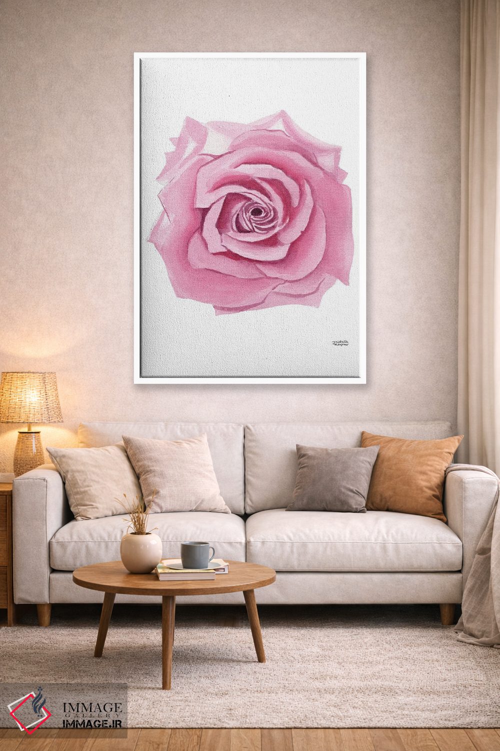 تابلو دکوراتیو گل رز صورتی آبرنگ اثر میشل موسپنس
