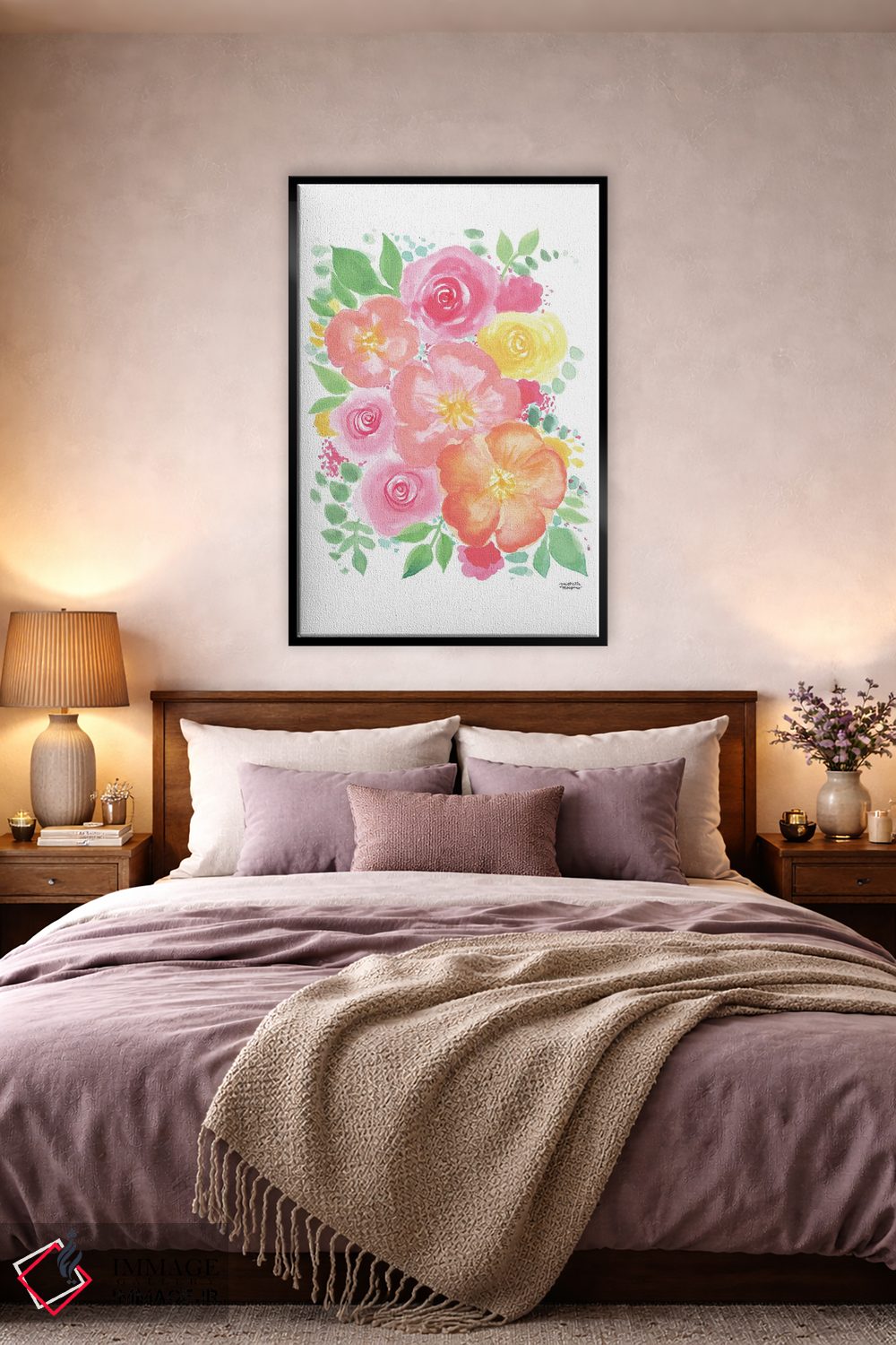تابلو دکوراتیو گل های نارنجی آبرنگ اثر میشل موسپنس