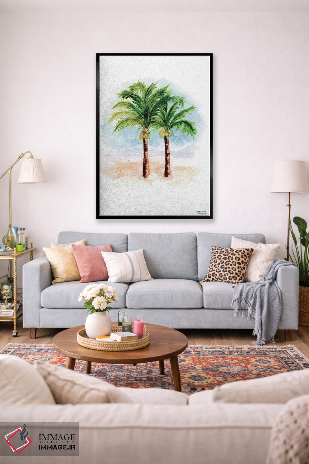 این اثر با عنوان «درختان نخل نارگیل آبرنگ» اثرِ «میشل موسپنس» چیدمان را از خشکی بیرون میآورد؛ برای دکورهای اسکانباوراوی انتخابی خوشسلیقه است. در کنار گیاهان آپارتمانی، هماهنگتر هم میشود.