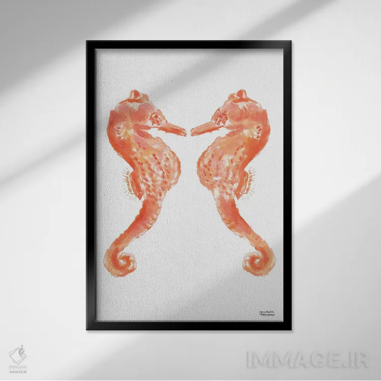 تابلو دکوراتیو اسب دریایی اول آبرنگ اثر میشل موسپنس