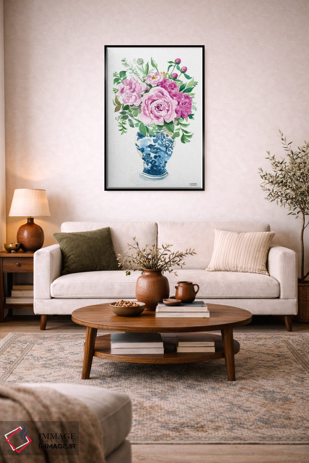 برای فضاهایی که به لطافت نیاز دارند، «کوزه زنجبیلی دهم آبرنگ» اثرِ «میشل موسپنس» حس فصل را آرام وارد فضا میکند؛ برای اتاق خواب انتخابی خوشسلیقه است. با قاب روشن یا چوبی، حس طبیعیتری پیدا میکند.