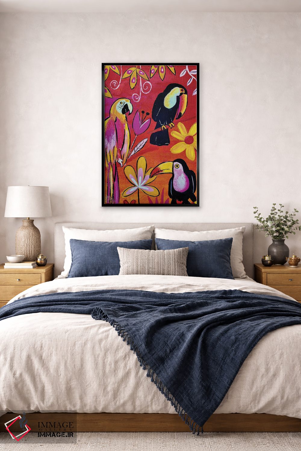 بوم گالری ایماژ نسخهی چیدماناتیوِ سطحبالا از یک اثر هنری است؛ روی کنواس سفیدِ یکدست و بدون اسید با چاپ هنری به استاندارد جیکلی (Giclée) با جوهرهای آرشیویِ حرفهای برای لایههای رنگی خواناتر؛ حس نهایی نزدیکتر به ارائهی گالریوار است؛ نه صرفاً یک تصویر.