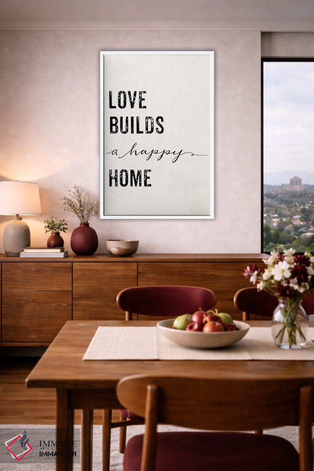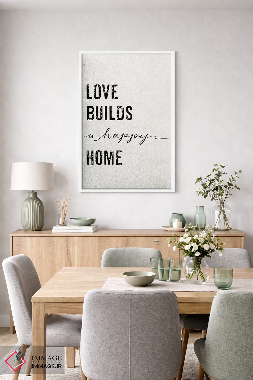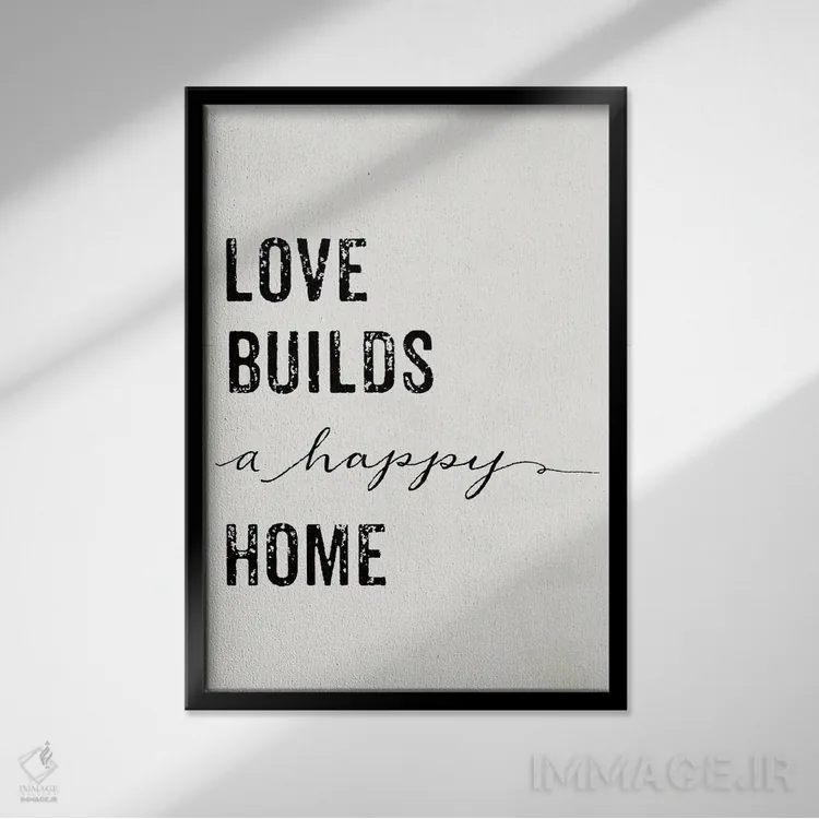 در «عشق خانهای شاد میسازد» اثرِ «مندی لین»، کلمات نقش تصویر را بازی میکنند؛ انتخابی خوب برای اتاق کار، استودیو یا کافهاستایل.