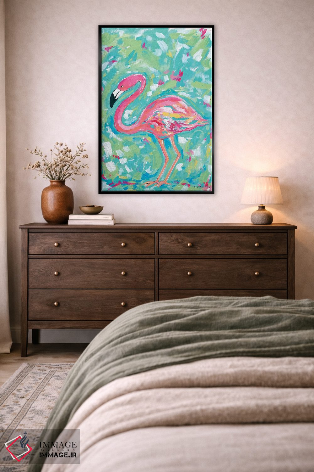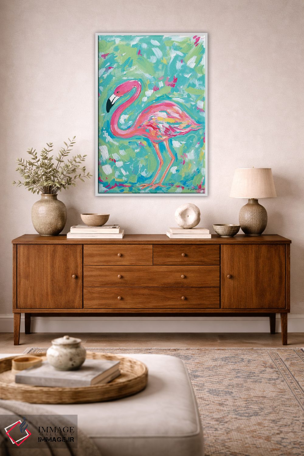 اگر به آثار حیوانات علاقه دارید، «فلامینگو تابستانی» اثرِ «جسیکا مینگو» حس طبیعت را بیدغدغه وارد خانه میکند، برای راهروها و ورودیهای گرم گزینهٔ مناسبیست. هم فضا را گرم میکند، هم شلوغش نمیکند.