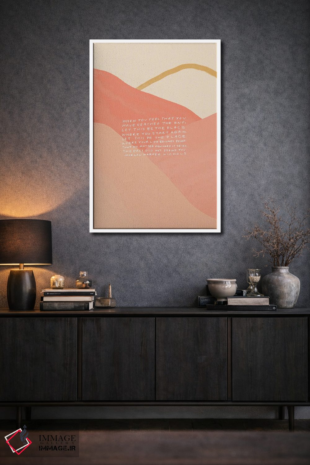 «گذشته تو را تعریف نکرد» اثرِ «مورگان هارپر نیکولز» با زبان تایپوگرافی، پیام را ساده و مستقیم روی دیوار مینشاند؛ مناسب برای فضاهای مدرن و مینیمال.
