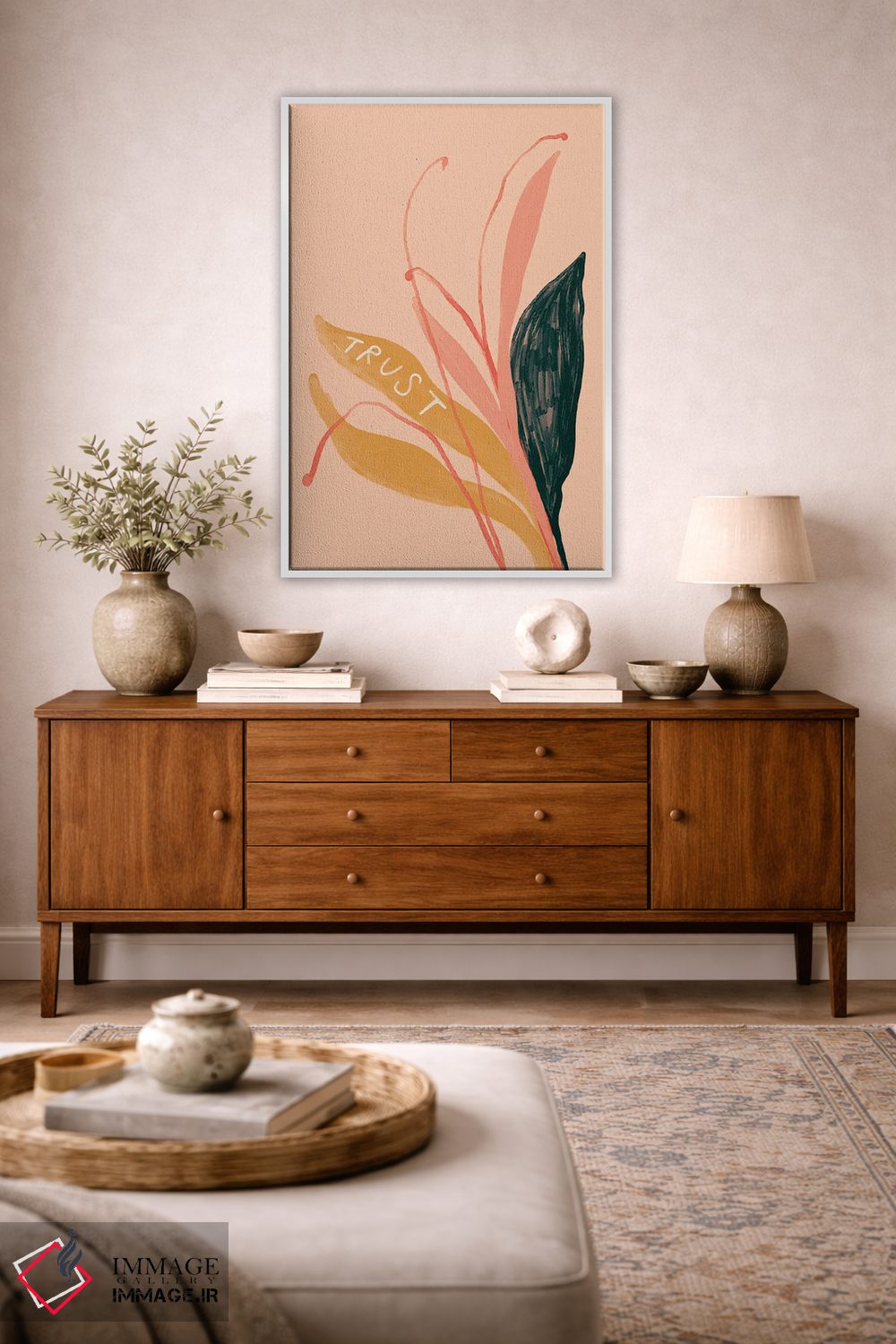 «اعتماد به گیاه» اثرِ «مورگان هارپر نیکولز» در فضای پرداختِ هنری، هم پیام دارد هم طراحی؛ برای دکورهای مینیمال عالی است.