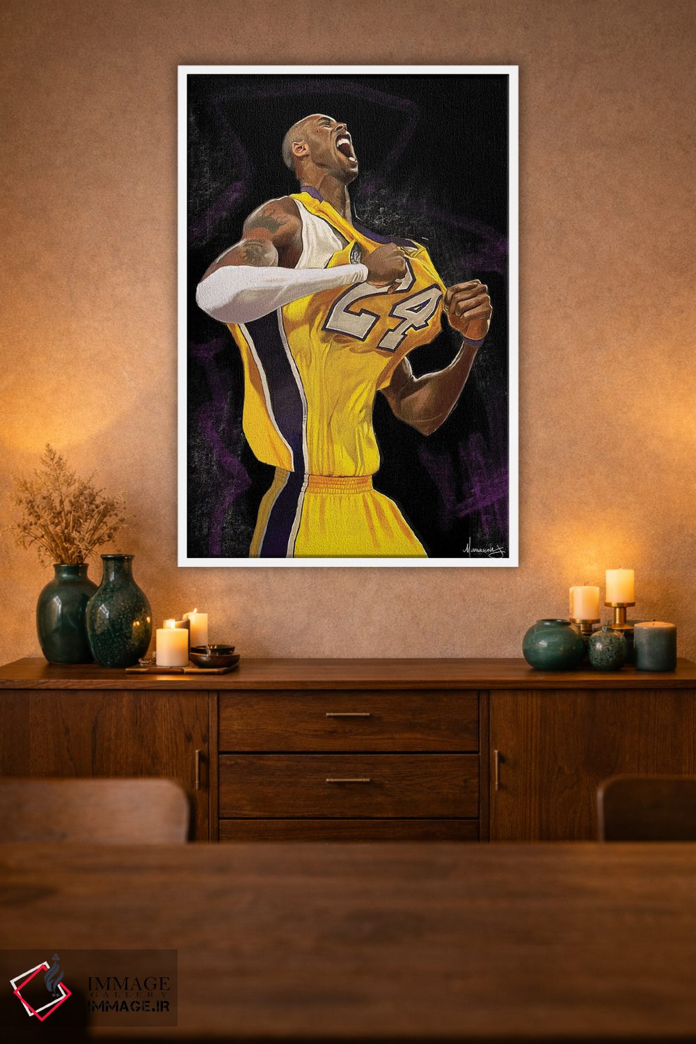 براساس پالت گرم اثر، قاب تیک گرم (چوبی) پیشنهاد اول است و مشکی مات (فریم متوسط) مکمل. برای سفارشهای پروژهای با ابعاد و قابهای اختصاصی با ایماژ در تماس باشید.