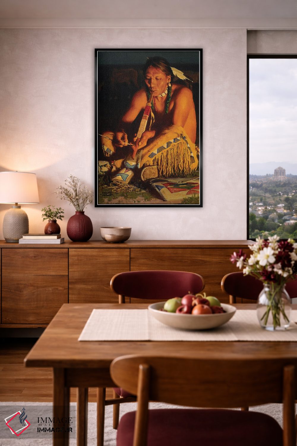 براساس پالت گرم اثر، قاب تیک گرم (چوبی) پیشنهاد اول است و مشکی مات (فریم متوسط) مکمل. برای سفارشهای پروژهای با ابعاد و قابهای اختصاصی با ایماژ در تماس باشید.