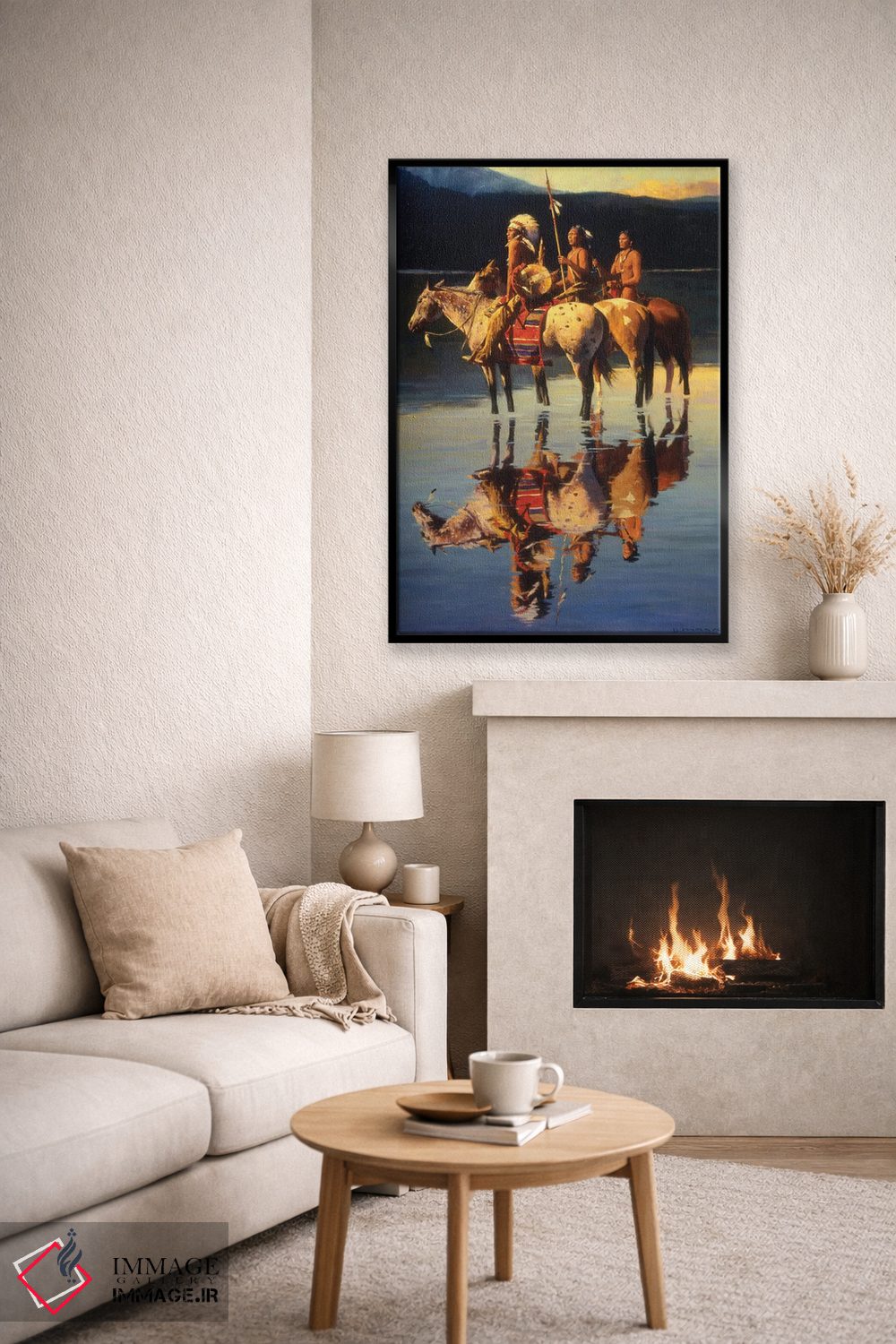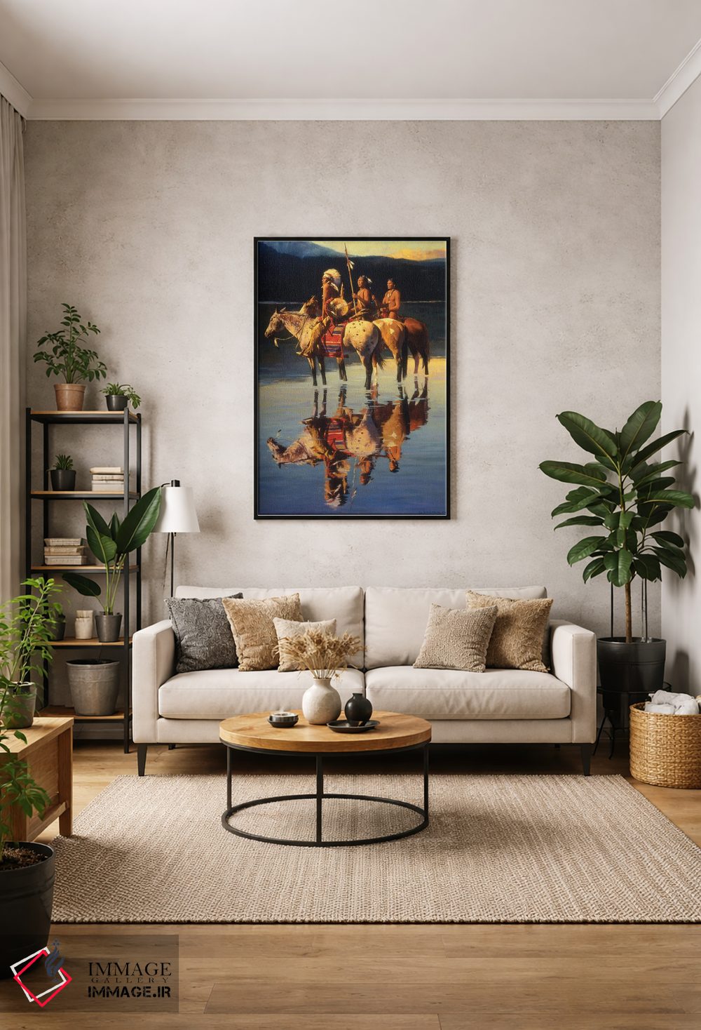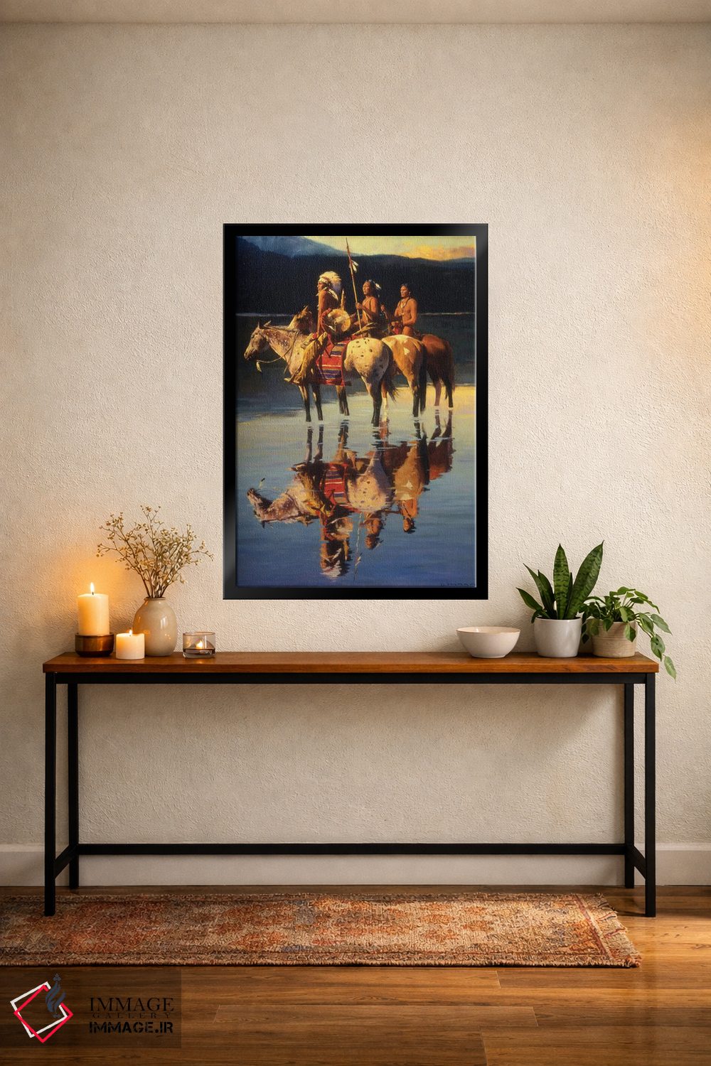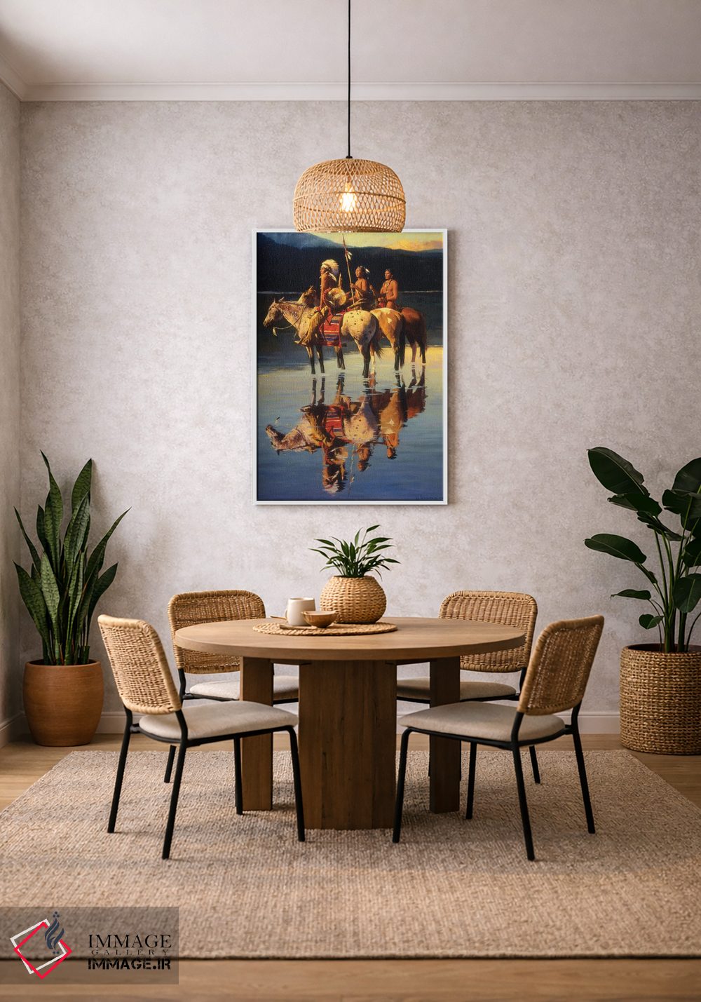 براساس پالت ترکیبی اثر، قاب تیک گرم (چوبی) پیشنهاد اول است و مشکی مات (فریم متوسط) مکمل. برای سفارشهای پروژهای با ابعاد و قابهای اختصاصی با ایماژ در تماس باشید.