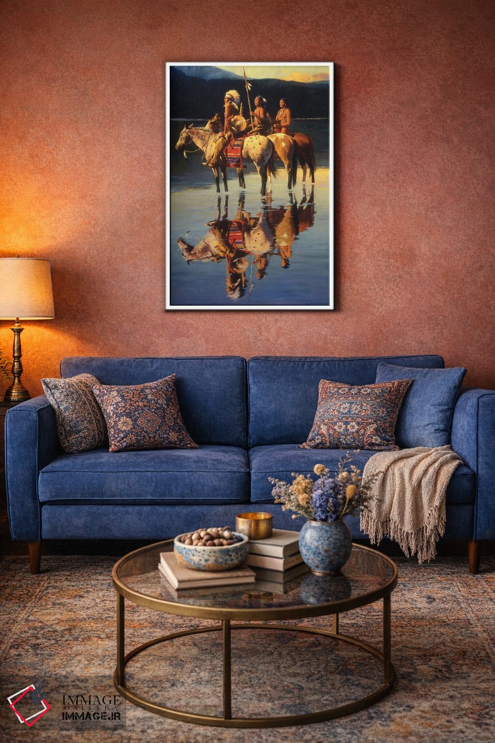 «"صلح بر دریاچه آبی"» اثرِ «دیوید من» میتواند کنار اکسسوریهای ساده و رنگهای خنثی، یک نقطهی تاکید شاد و قابلکنترل بسازد.