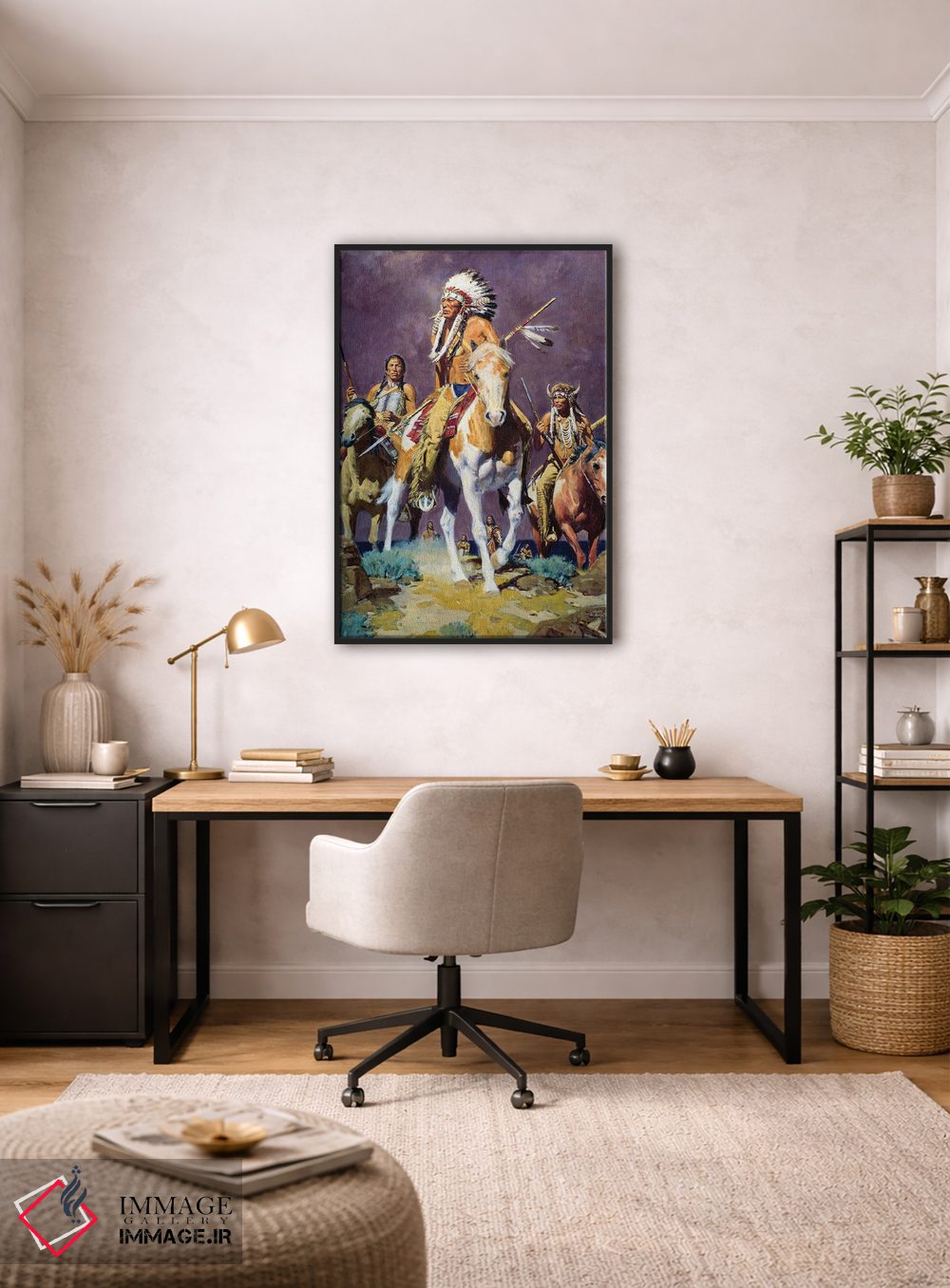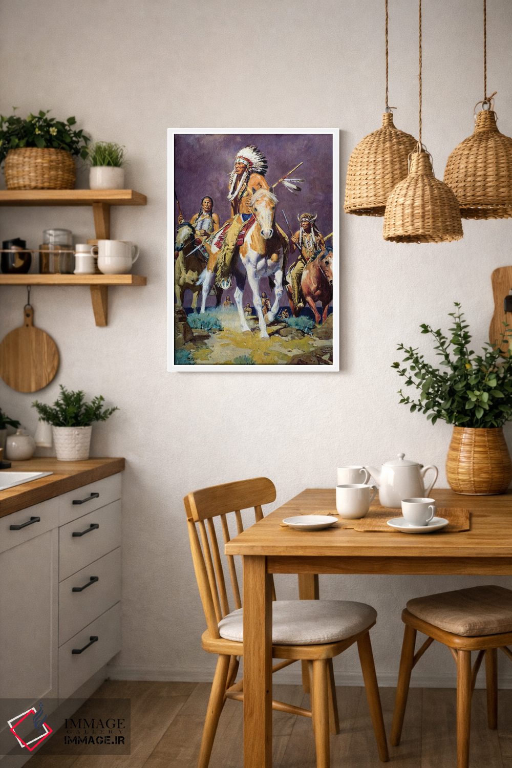 براساس پالت گرم اثر، قاب تیک گرم (چوبی) پیشنهاد اول است و مشکی مات (فریم متوسط) مکمل. برای سفارشهای پروژهای با ابعاد و قابهای اختصاصی با ایماژ در تماس باشید.