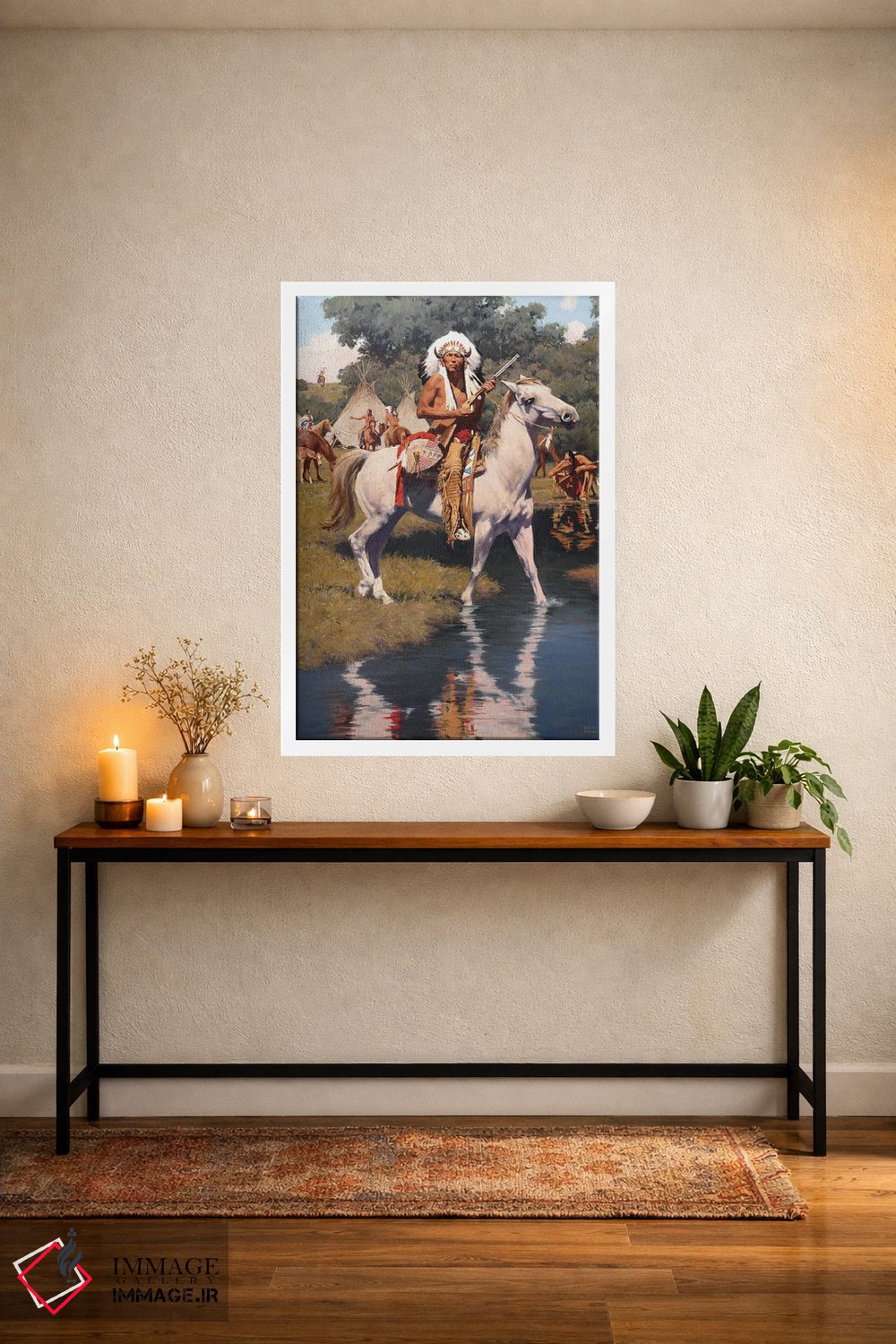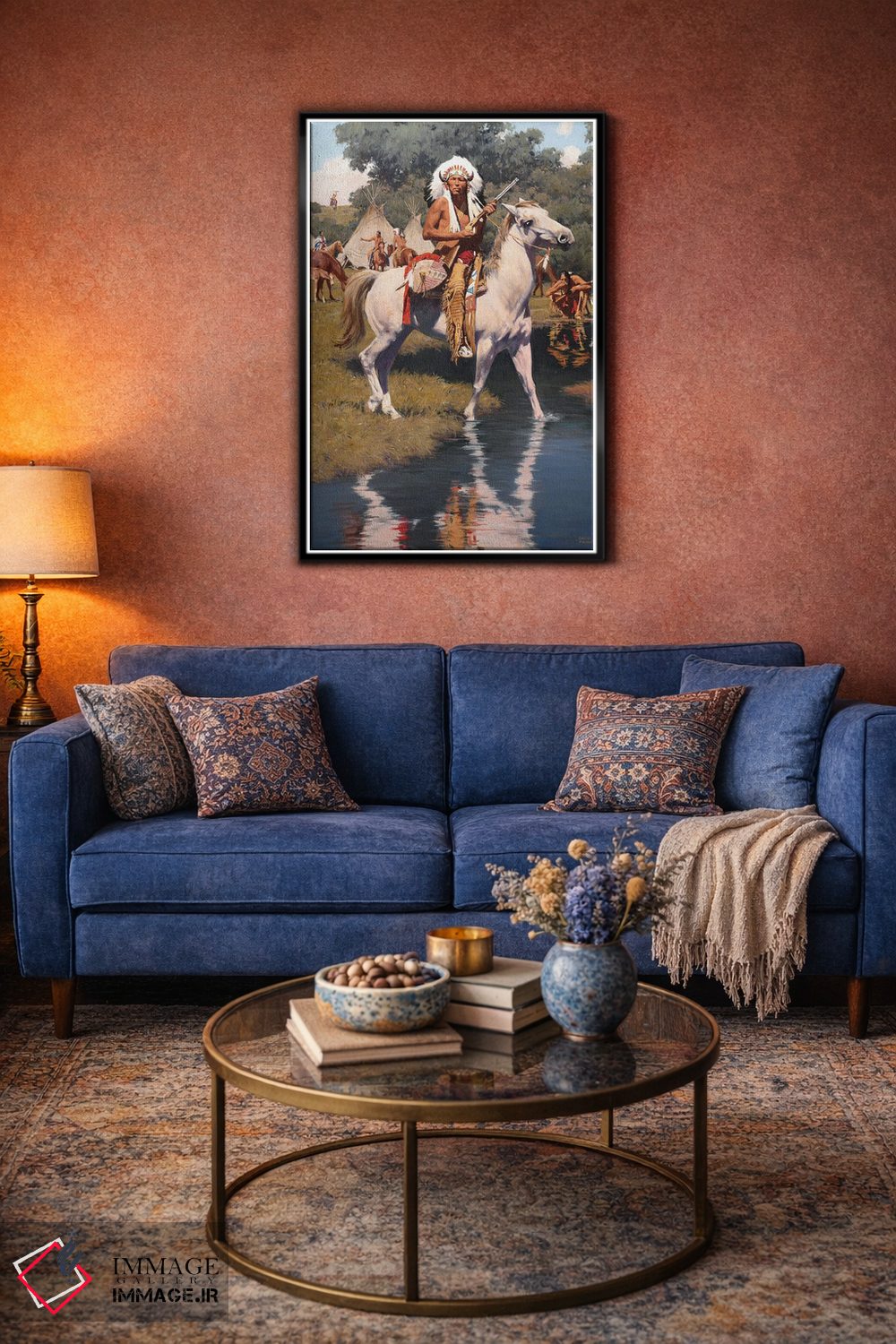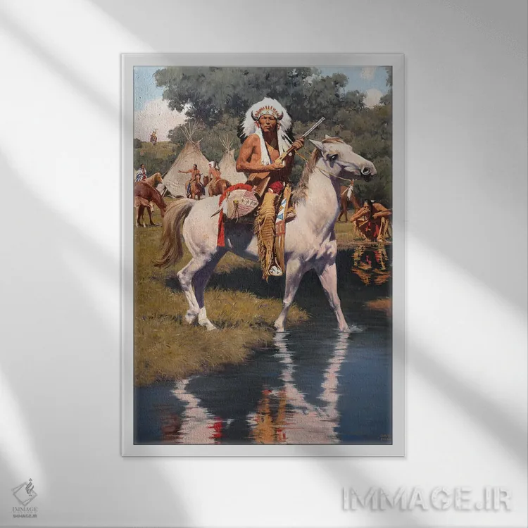 براساس پالت ترکیبی اثر، قاب تیک گرم (چوبی) پیشنهاد اول است و مشکی مات (فریم متوسط) مکمل. برای سفارشهای پروژهای با ابعاد و قابهای اختصاصی با ایماژ در تماس باشید.