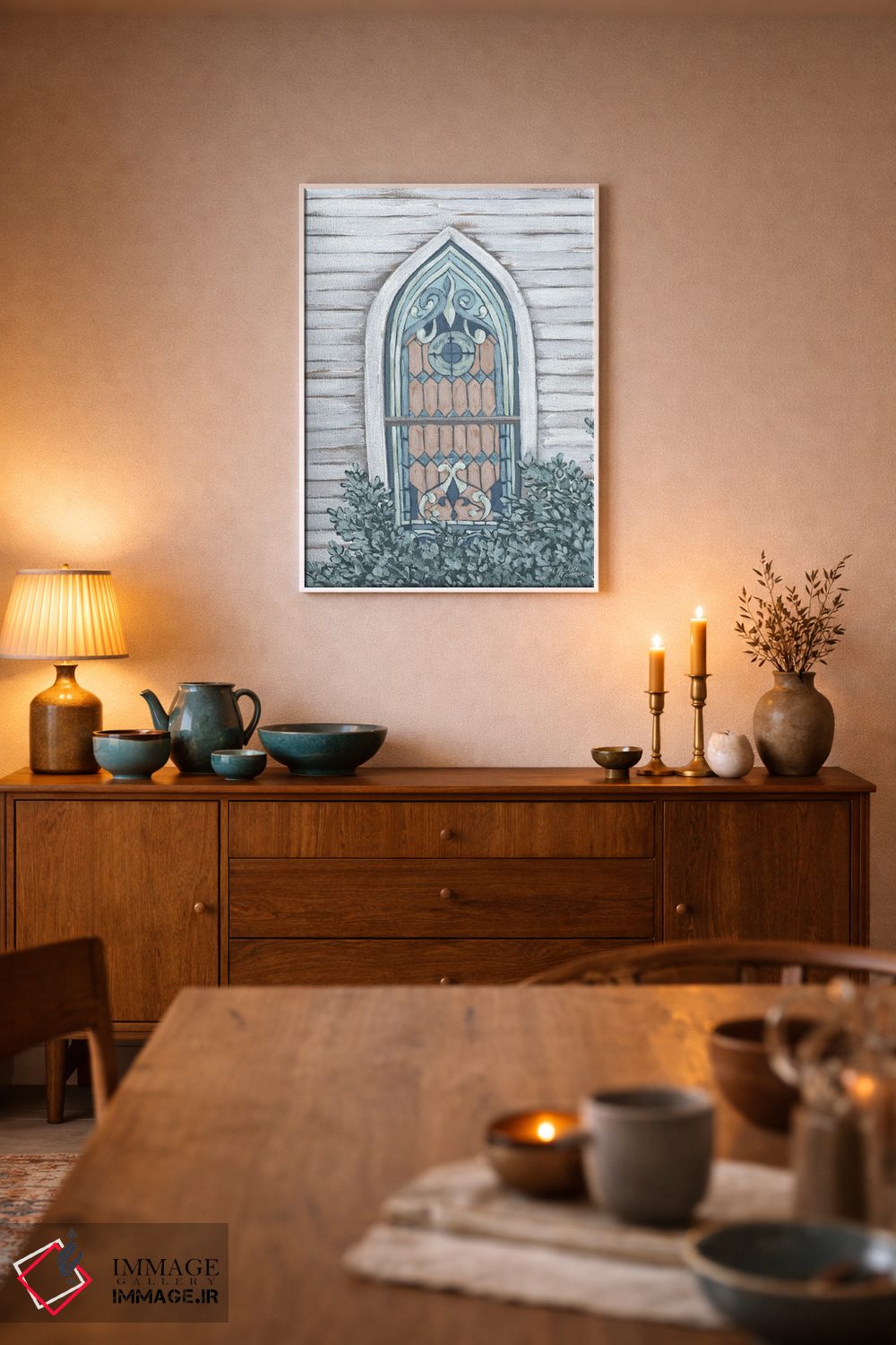 اگر دوست دارید هماهنگی کاملتر شود، رنگِ سفید را در یک تابلو کوچک مکمل جا بدهید تا رنگها طبیعیتر در محیط پخش شوند. انتخاب قاب هم میتواند این اکسنت را تقویت کند.