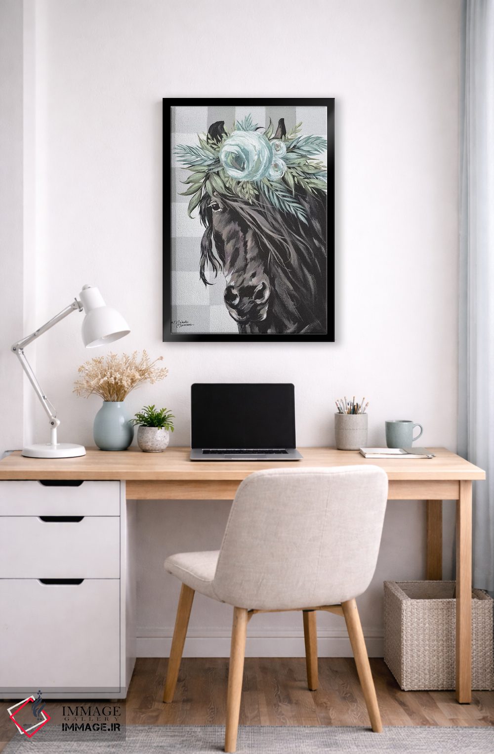 براساس پالت خنثی اثر، قاب مشکی مات (فریم باریک) پیشنهاد اول است و سفید مات (فریم باریک) مکمل. برای سفارشهای پروژهای با ابعاد و قابهای اختصاصی با ایماژ در تماس باشید.