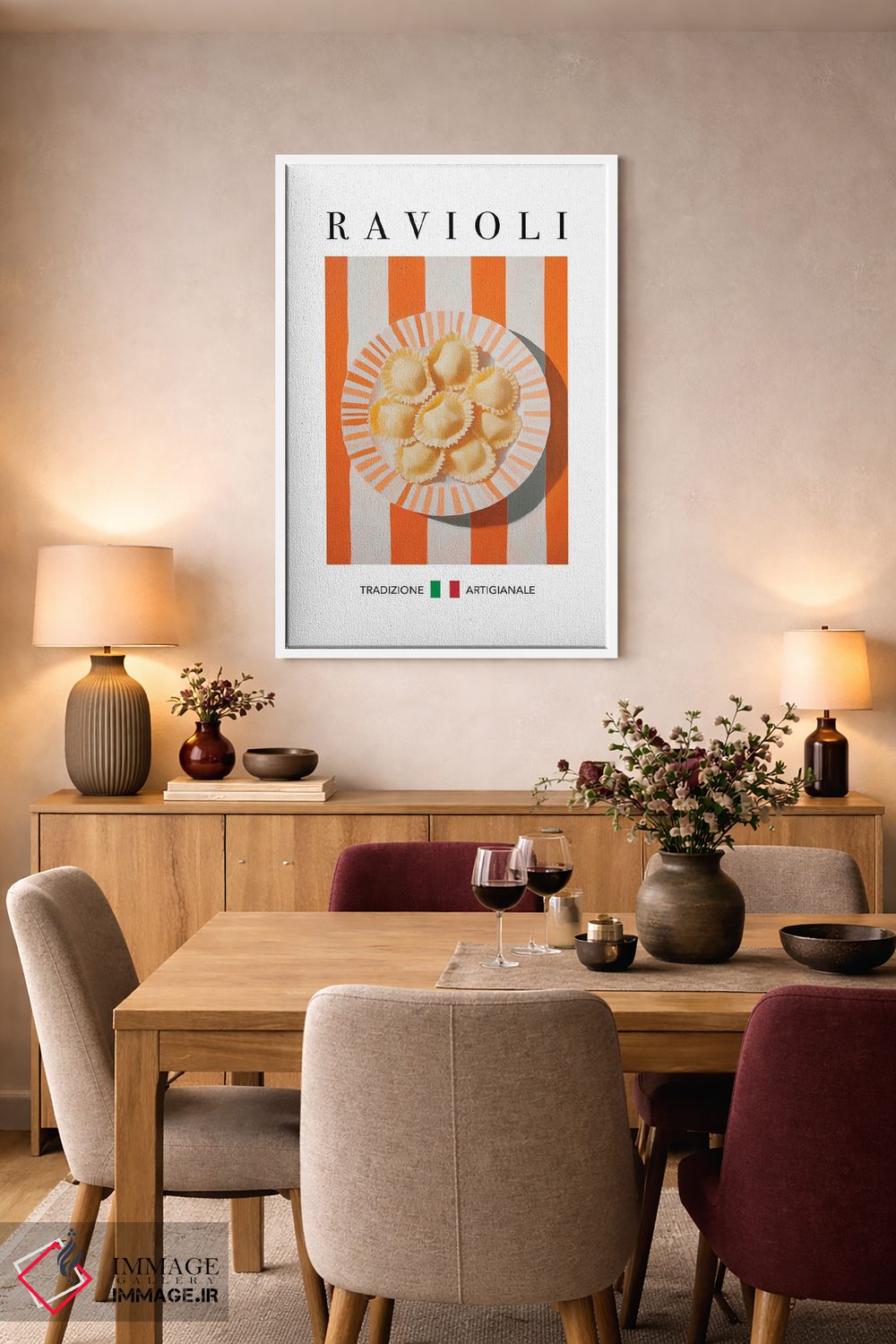 اگر چیدمانتان مینیمال است و فقط یک نقطهی رنگ میخواهید، «راویولی (نوعی پاستا پرشده)» اثرِ «آندریاس ماگنوسون» با تم این اثر گزینهی خوشسلیقهای است.