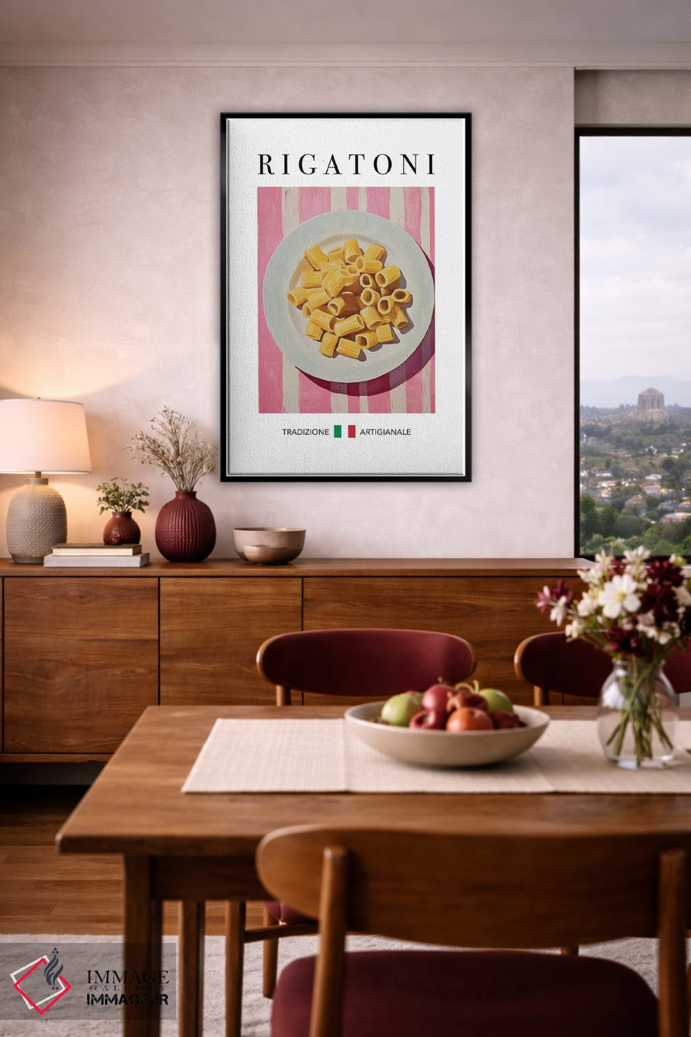 «ریگاتونی (نوعی پاستا لولهای)» اثرِ «آندریاس ماگنوسون» یک قاب دکوراتیوِ خوشخوان است؛ این اثر در آن بهجای اغراق، با ظرافت و تناسب دیده میشود.