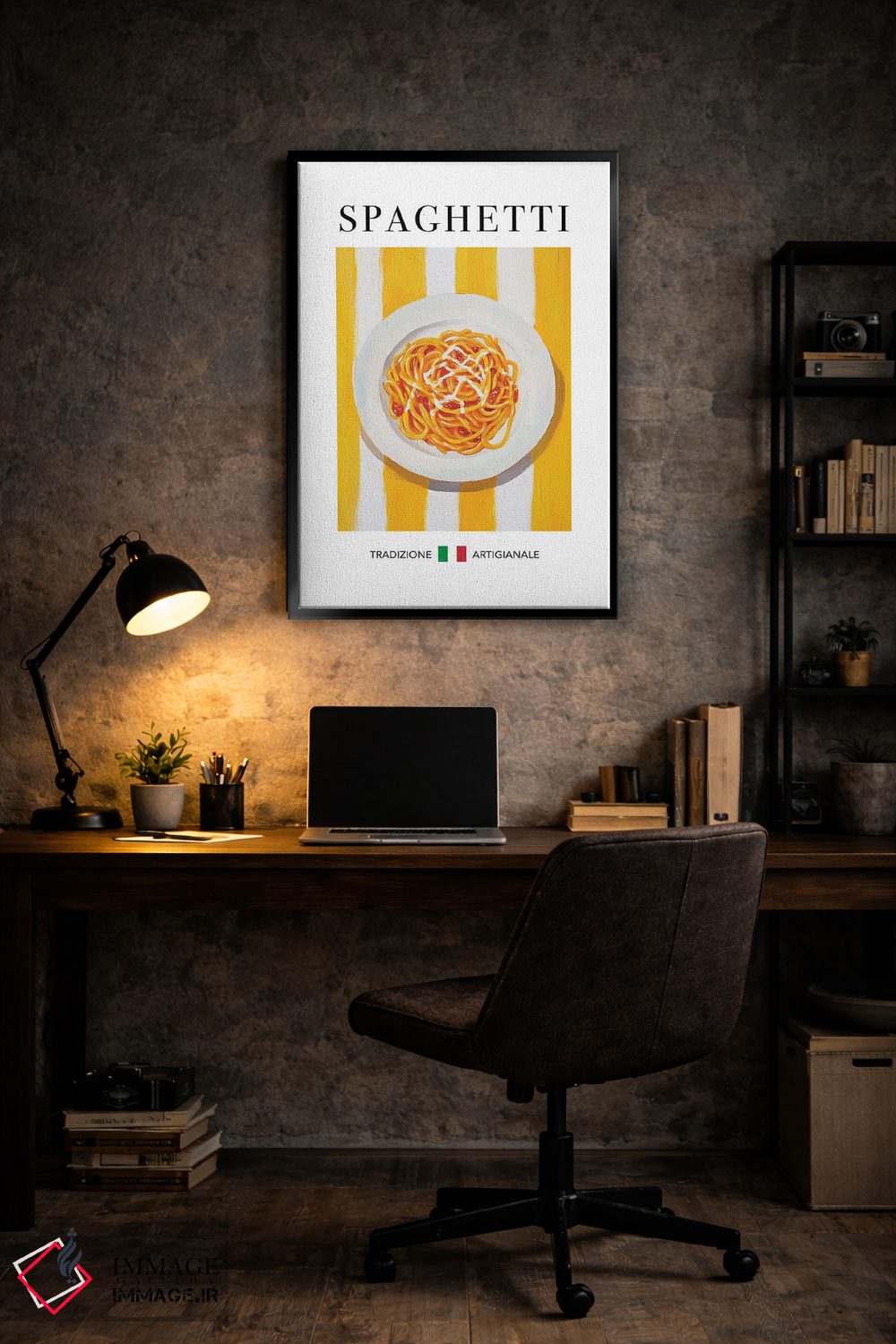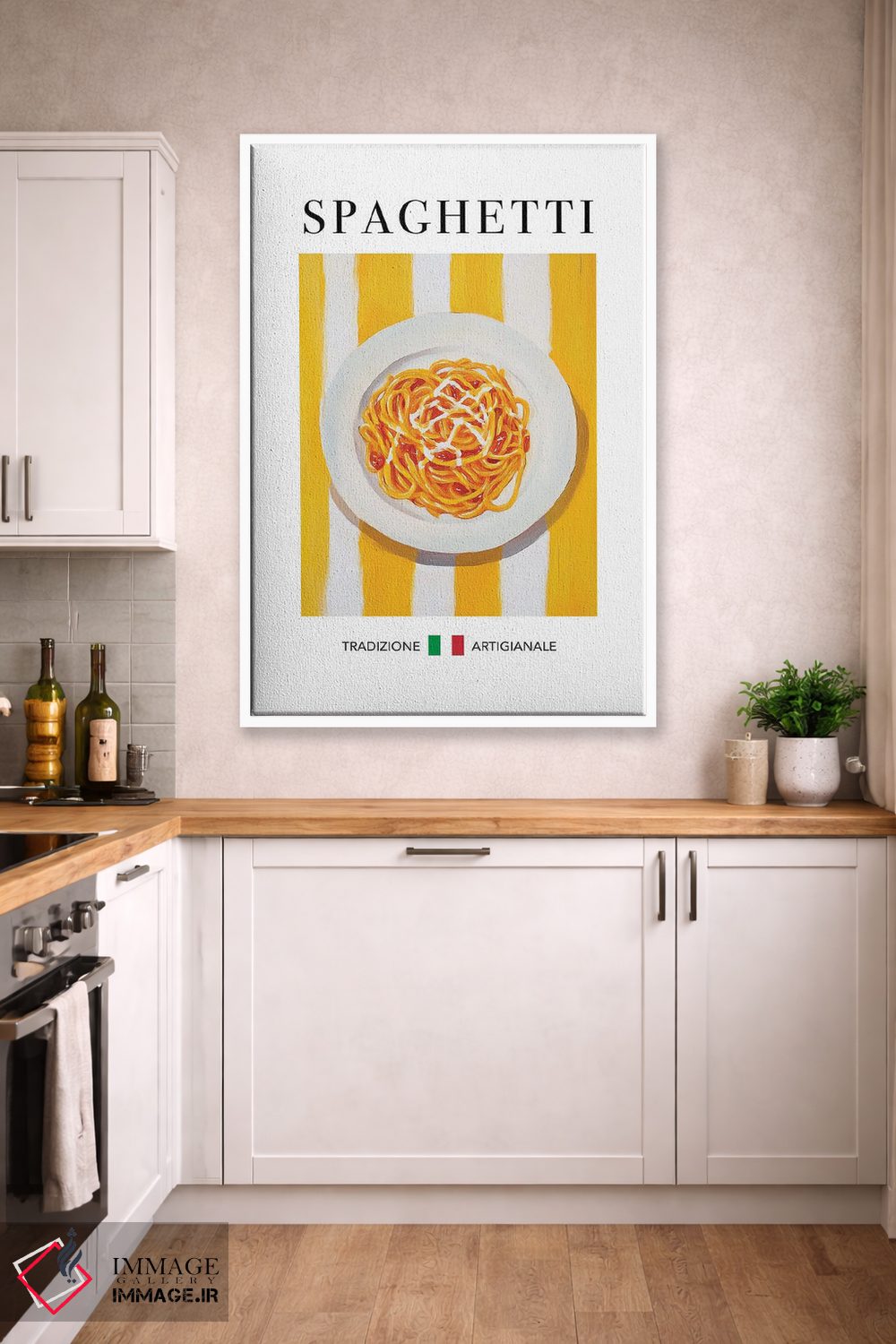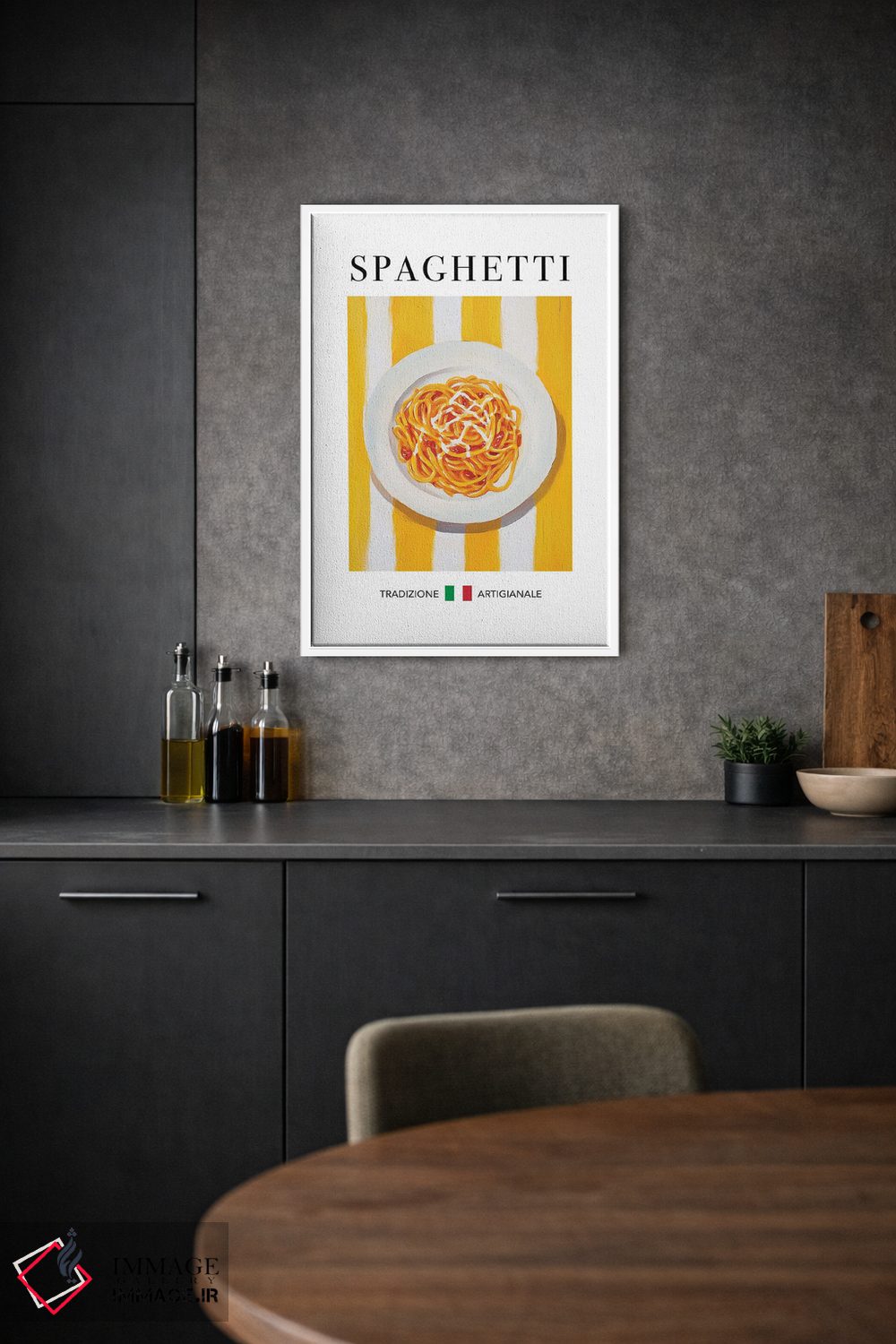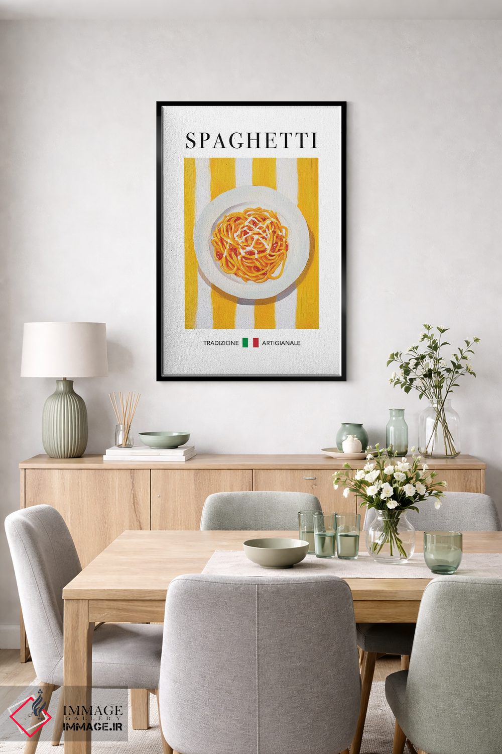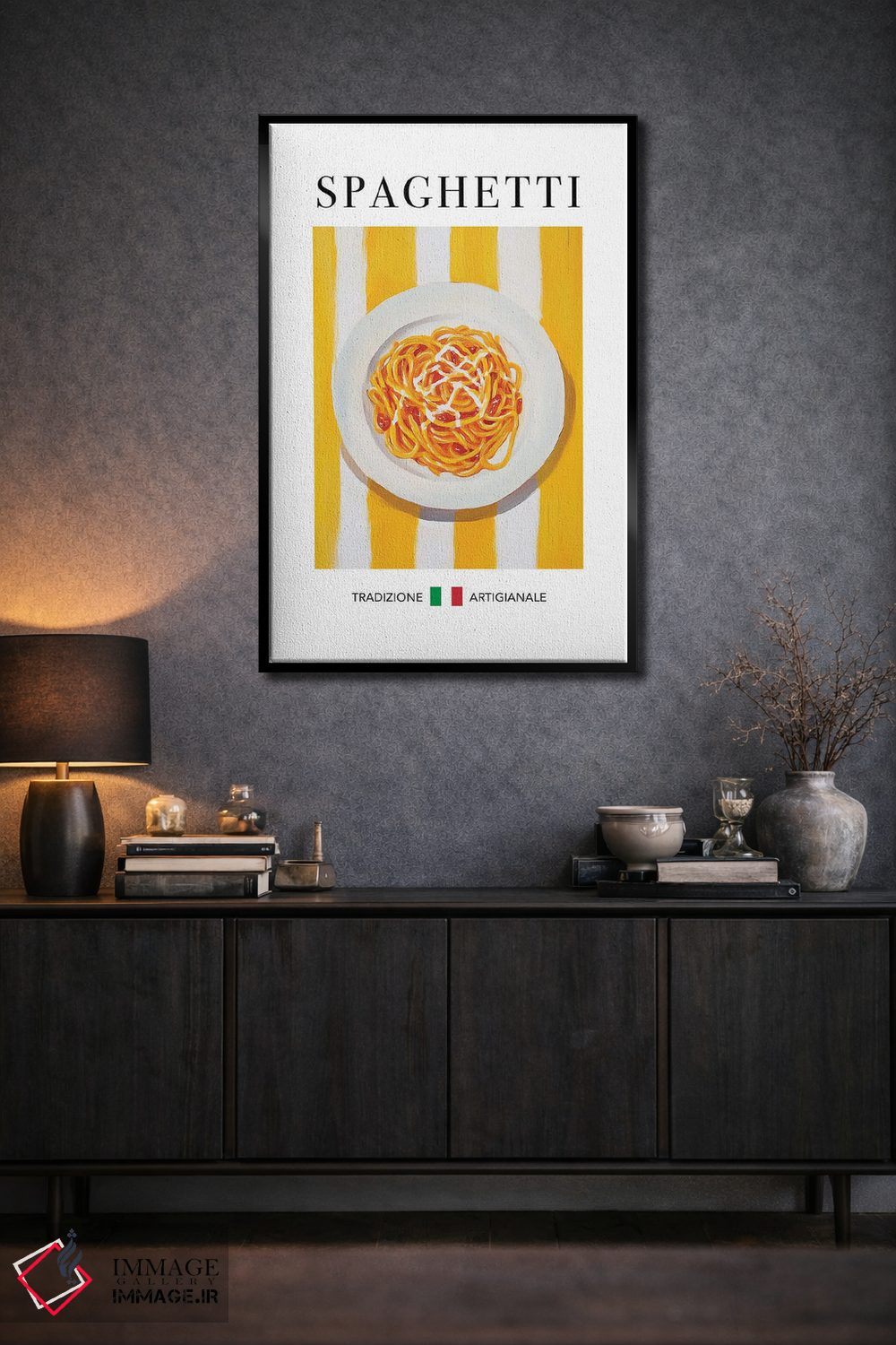 «اسپاگتی (پاستا رشتهای)» اثرِ «آندریاس ماگنوسون» از آن قابهایی است که کنار رنگهای خاکی و کرم، زیباتر دیده میشود؛ موضوعِ این اثر هم حسِ بهاری میدهد.