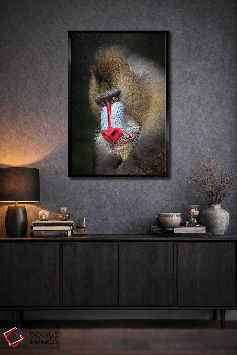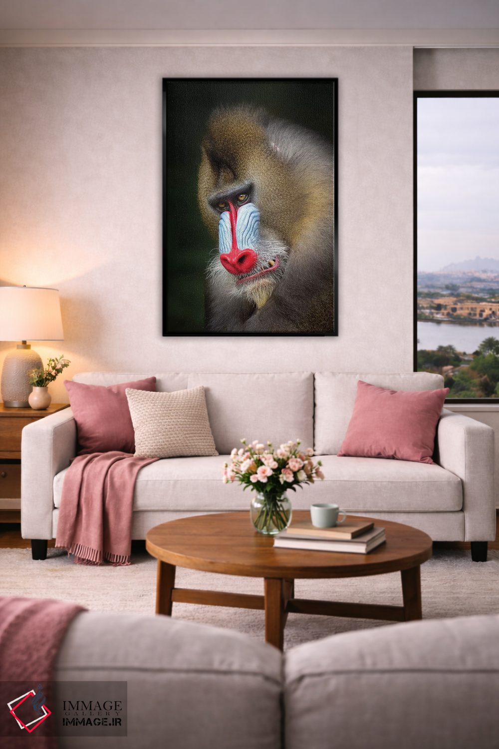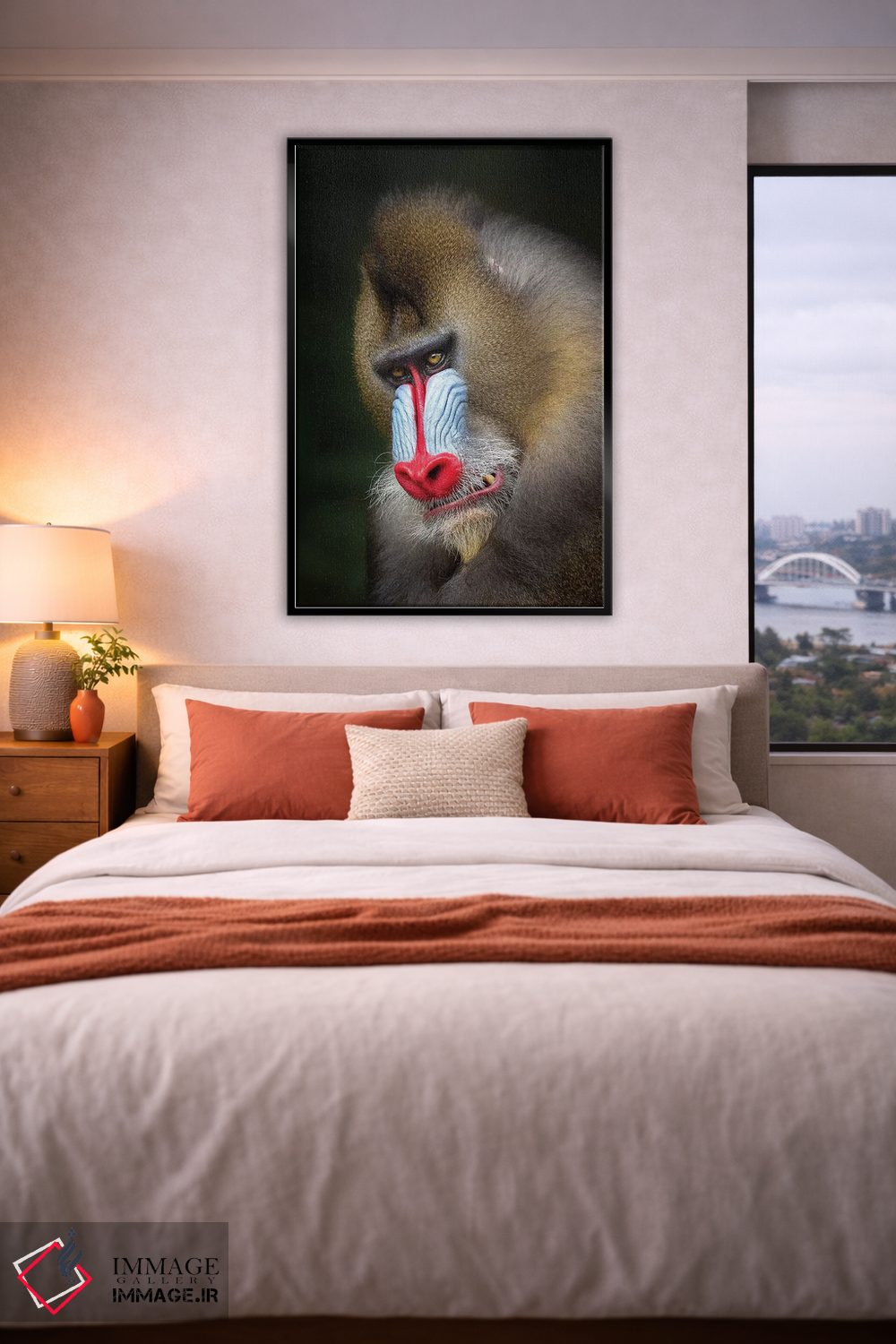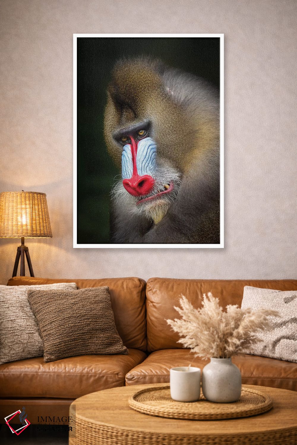 براساس پالت گرم اثر، قاب بلوط روشن (چوبی) پیشنهاد اول است و استخوانی ملایم مکمل. برای سفارشهای پروژهای با ابعاد و قابهای اختصاصی با ایماژ در تماس باشید.