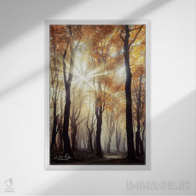براساس پالت گرم اثر، قاب تیک گرم (چوبی) پیشنهاد اول است و مشکی مات (فریم متوسط) مکمل. برای سفارشهای پروژهای با ابعاد و قابهای اختصاصی با ایماژ در تماس باشید.
