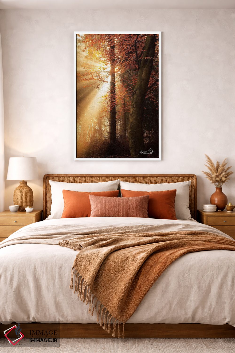 براساس پالت گرم اثر، قاب تیک گرم (چوبی) پیشنهاد اول است و مشکی مات (فریم متوسط) مکمل. برای سفارشهای پروژهای با ابعاد و قابهای اختصاصی با ایماژ در تماس باشید.