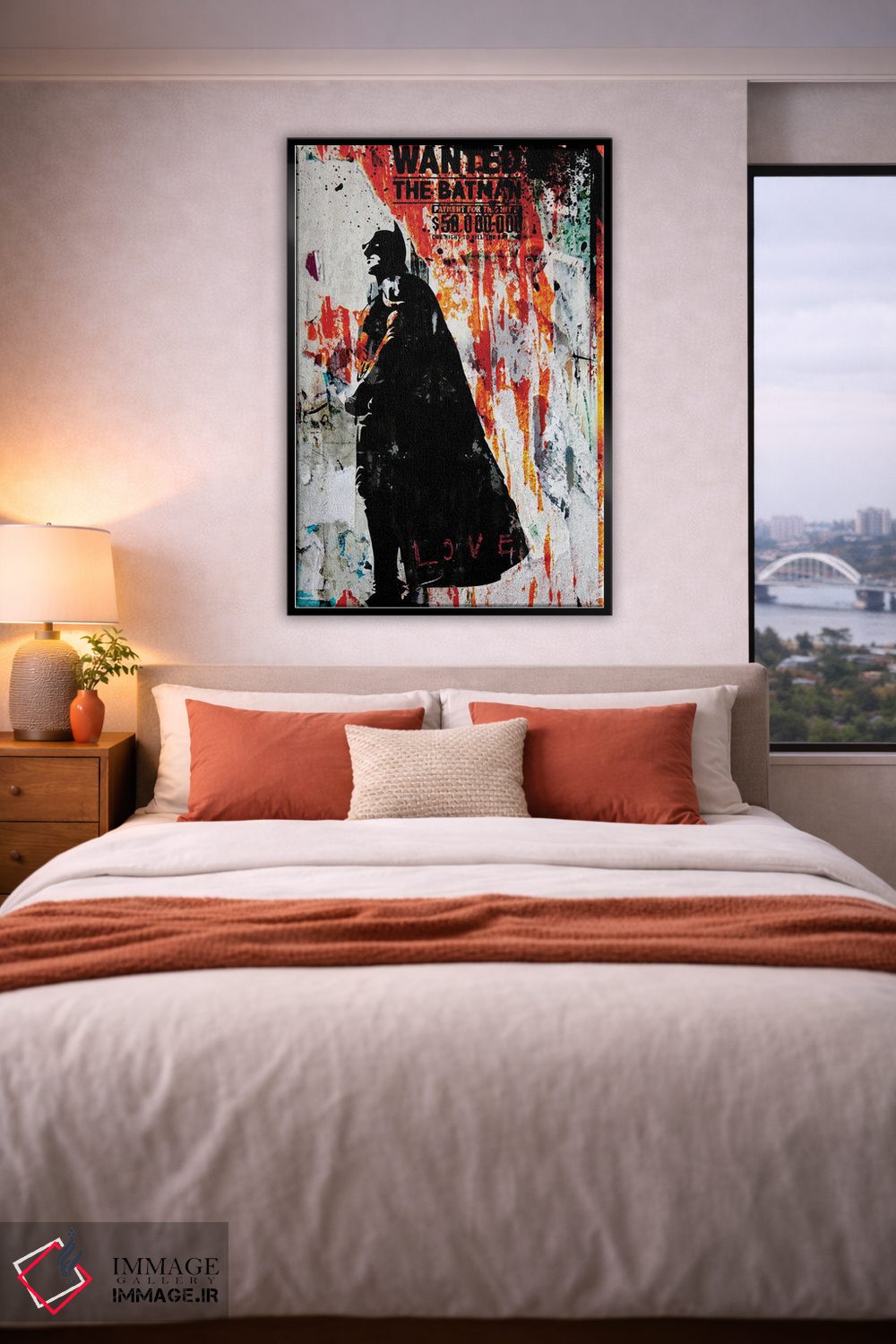 برای فضایی که میخواهید مرتبتر و حرفهایتر دیده شود، «بتمن» اثرِ «مورگان پاسلیه» به فضا، روایت ملایم و قابل لمس میدهد؛ برای راهروها و ورودیهای مینیمال پیشنهاد میشود. حضورش روی دیوار «مرتب» است؛ نه پر سر و صدا، نه بیاثر.
