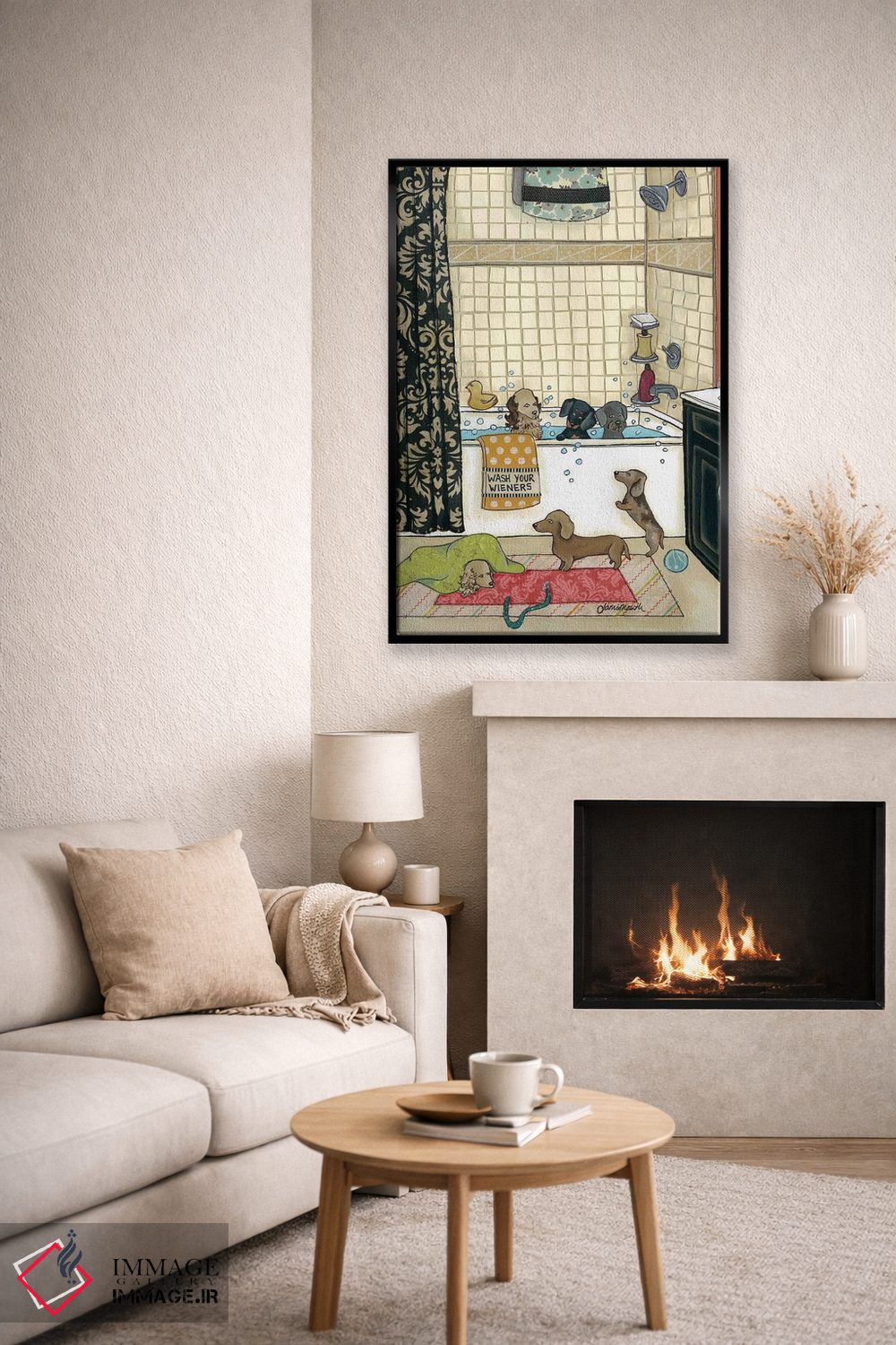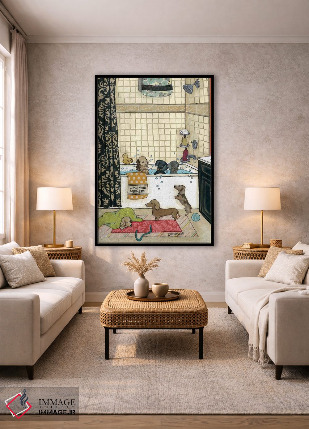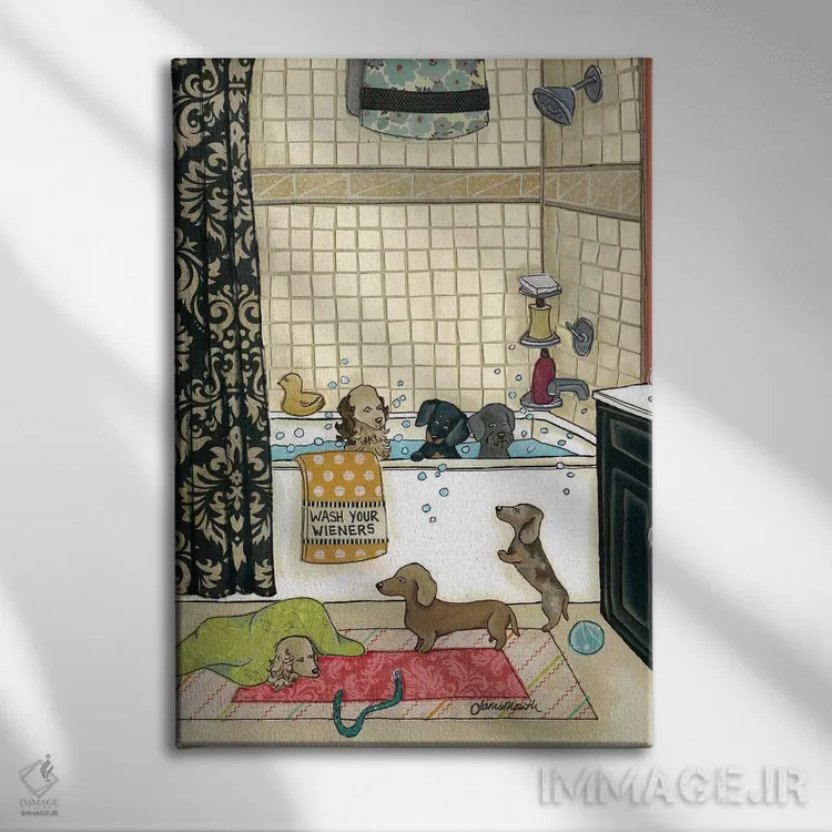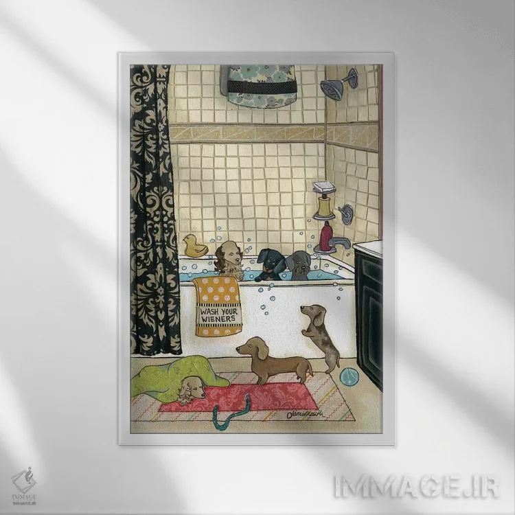 برای دیوارهای ساده، «وینرهایت را بشوی (وینر: سگ سوسیسی)» اثرِ «جیمی موراث» یک لبخند ریز به چیدمان میدهد؛ برای خانههایی با چوب و پارچههای گرم انتخابی خوشسلیقه است. هم فضا را گرم میکند، هم شلوغش نمیکند.