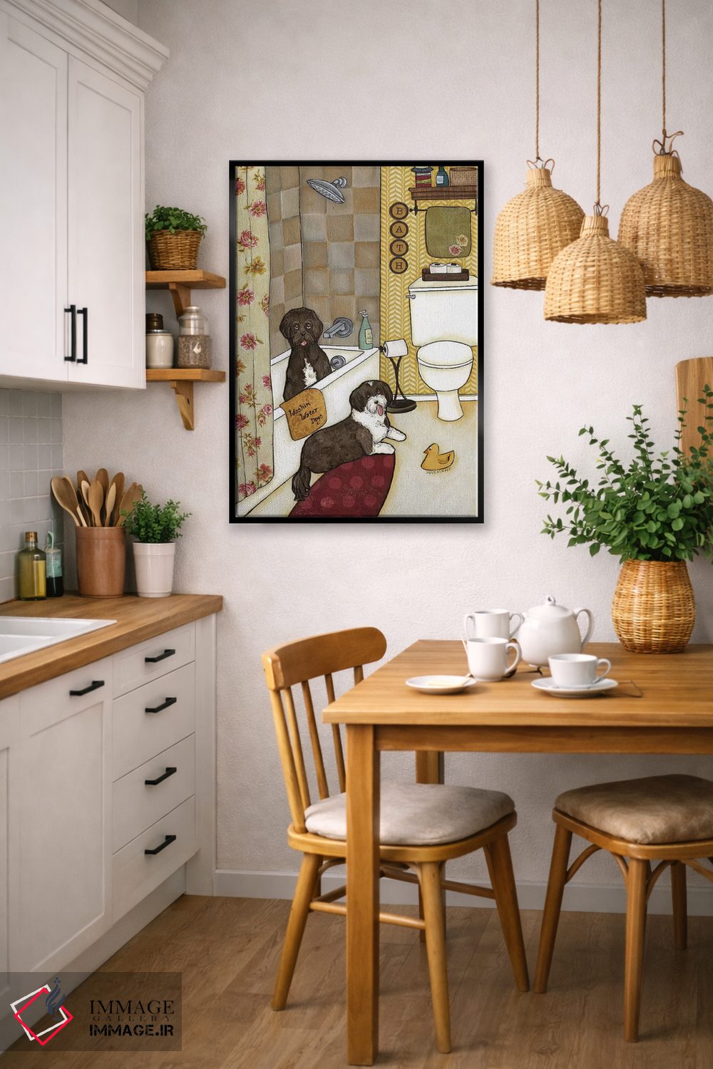 «شستن سگهای آبی» اثرِ «جیمی موراث» میتواند فضا را صمیمیتر و دعوتکنندهتر نشان بدهد؛ برای دکورهایی با رنگهای خنثی پیشنهاد میشود. در کنار گیاهان و نور طبیعی، جذابتر هم میشود.