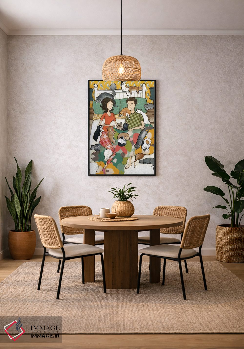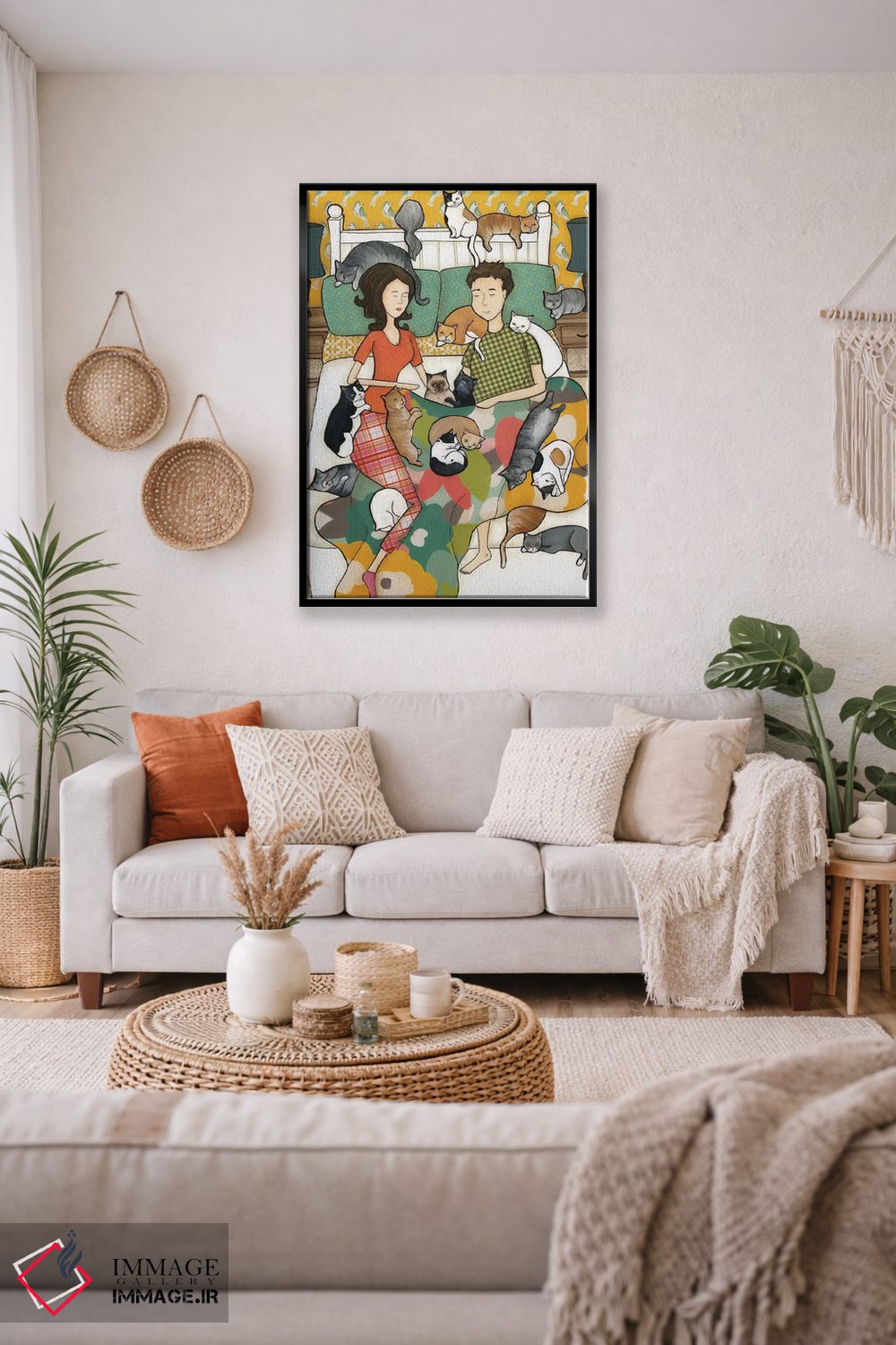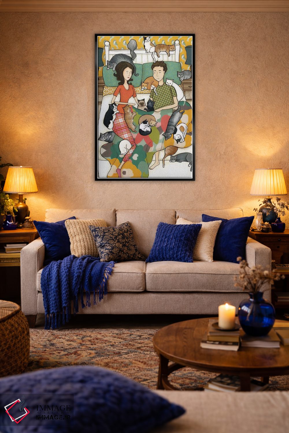 برای اتاقی که به یک عنصر دوستداشتنی نیاز دارد، «خواب کوتاه گربهای» اثرِ «جیمی موراث» یک لبخند ریز به چیدمان میدهد؛ برای نشیمنهای خانوادگی انتخابی خوشسلیقه است. با قاب چوبی یا مشکی، حس مرتبتری پیدا میکند.