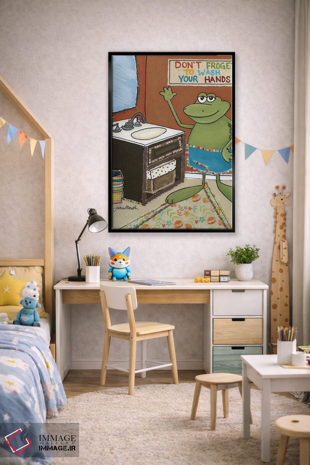 اگر به آثار حیوانات علاقه دارید، «شستن را فراموش نکن (واژه با بازی لفظی)» اثرِ «جیمی موراث» بافت و جزئیات را طوری نشان میدهد که نگاه میماند، برای اتاق کودک (بدون لحن کودکانه) گزینهٔ مناسبیست. به دیوار، قصه میدهد—اما قصهای آرام و شیک.