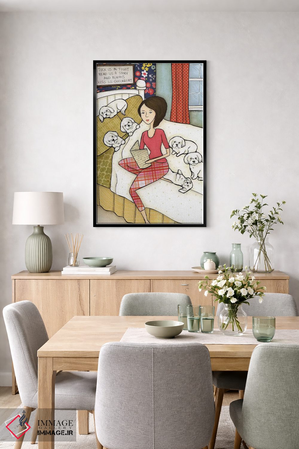 اگر به آثار حیوانات علاقه دارید، «ما را بپوشان (سر شب)» اثرِ «جیمی موراث» به فضا، گرمیِ ملایم اضافه میکند، برای هدیهدادن به دوستداران حیوانات گزینهٔ مناسبیست. هر بار نگاهش میکنید، یک جزئیات تازه به چشم میآید.