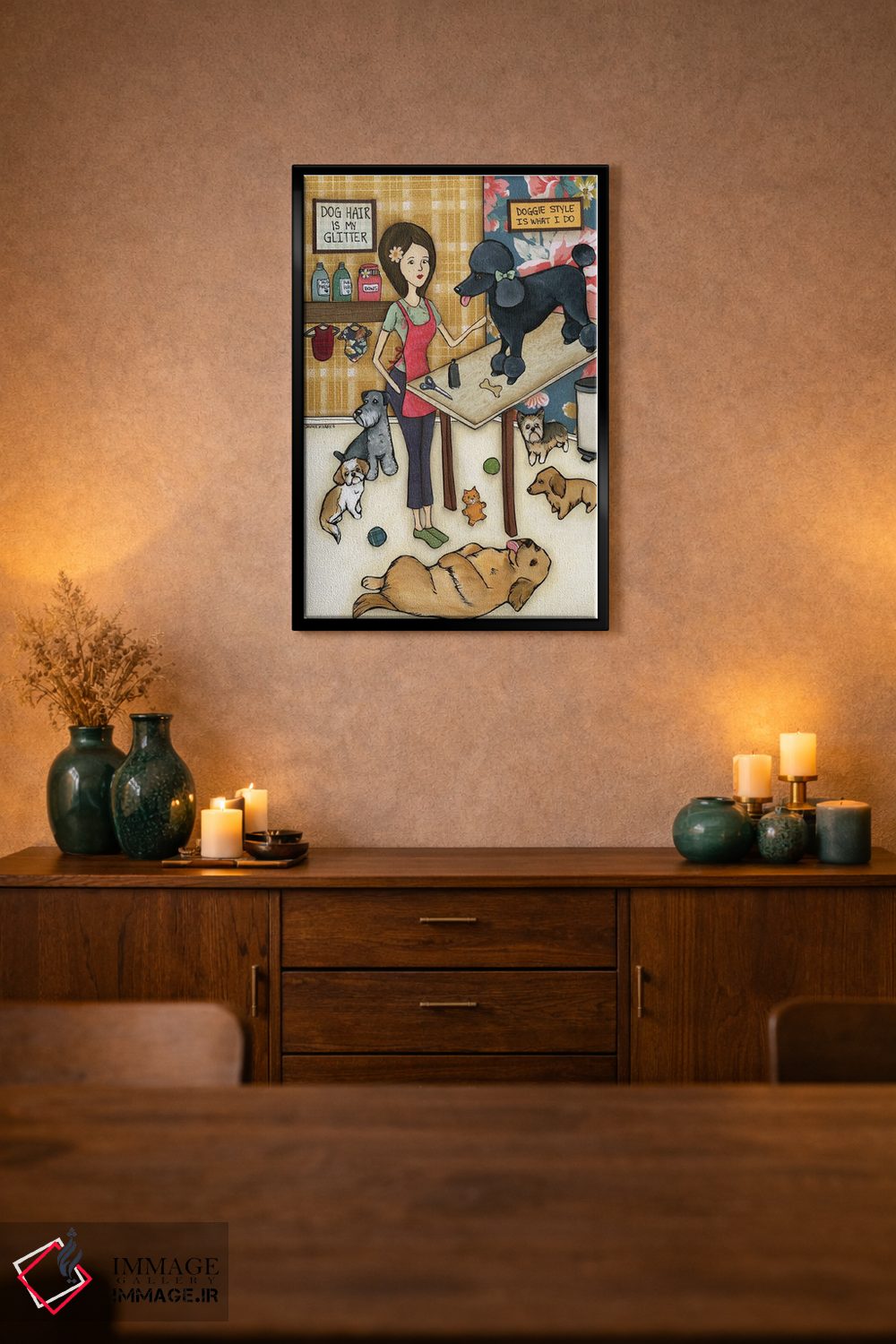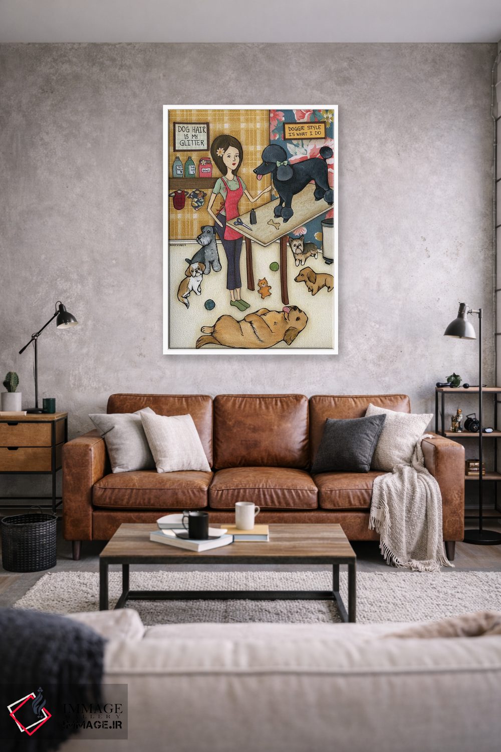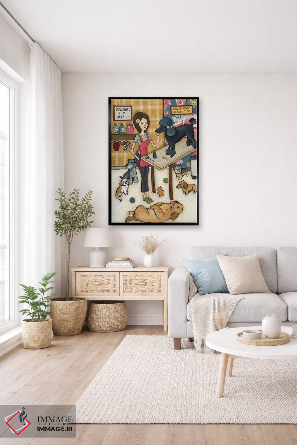 در «حالت سگ (ژست سگ)» اثرِ «جیمی موراث»، حضور حیوانات حس طبیعت را بیدغدغه وارد خانه میکند؛ برای دکورهای مدرن و مینیمال انتخابی خوشسلیقه است. برای دیوار گالریوار هم گزینهٔ خوبیست.
