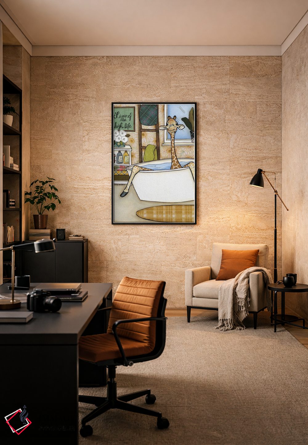«زندگی سطح بالا» اثرِ «جیمی موراث» از آن کارهاییست که به دیوار، انرژیِ نرم و زنده میدهد؛ برای دیوار کنار میز کار انتخاب خوبیست. هم فضا را گرم میکند، هم شلوغش نمیکند.