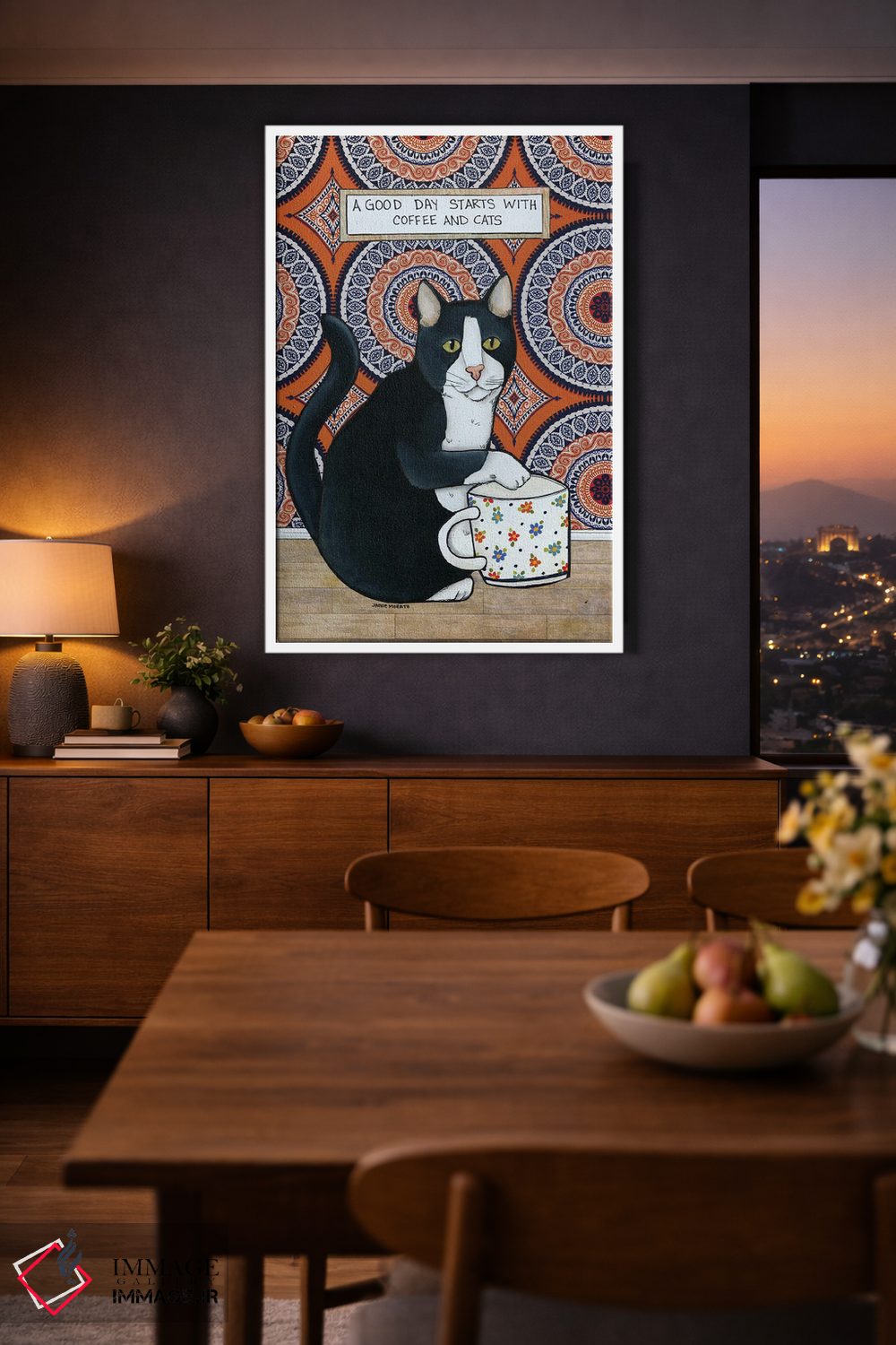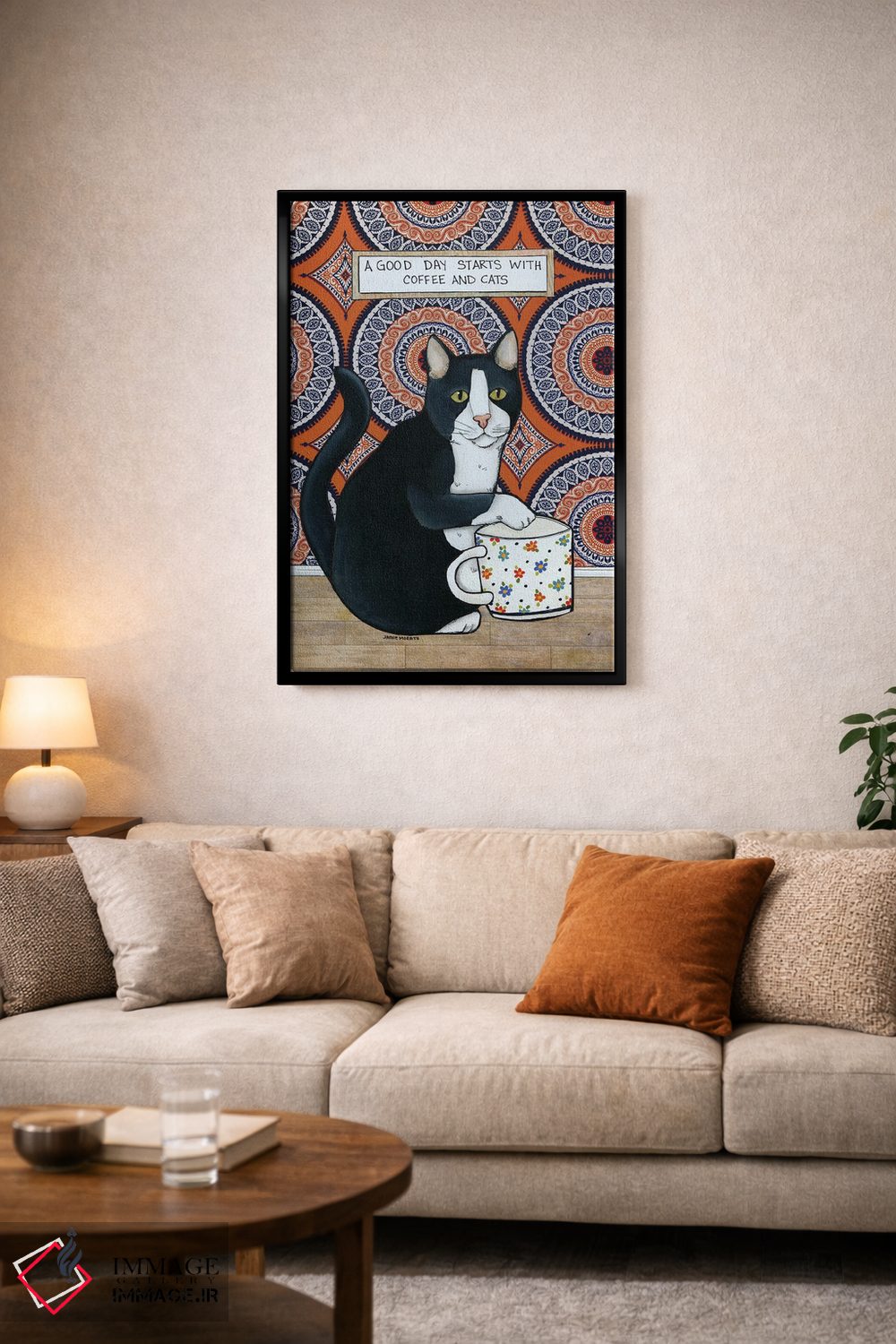 تابلو دکوراتیو قهوه و گربه ها اثر جیمی موراث