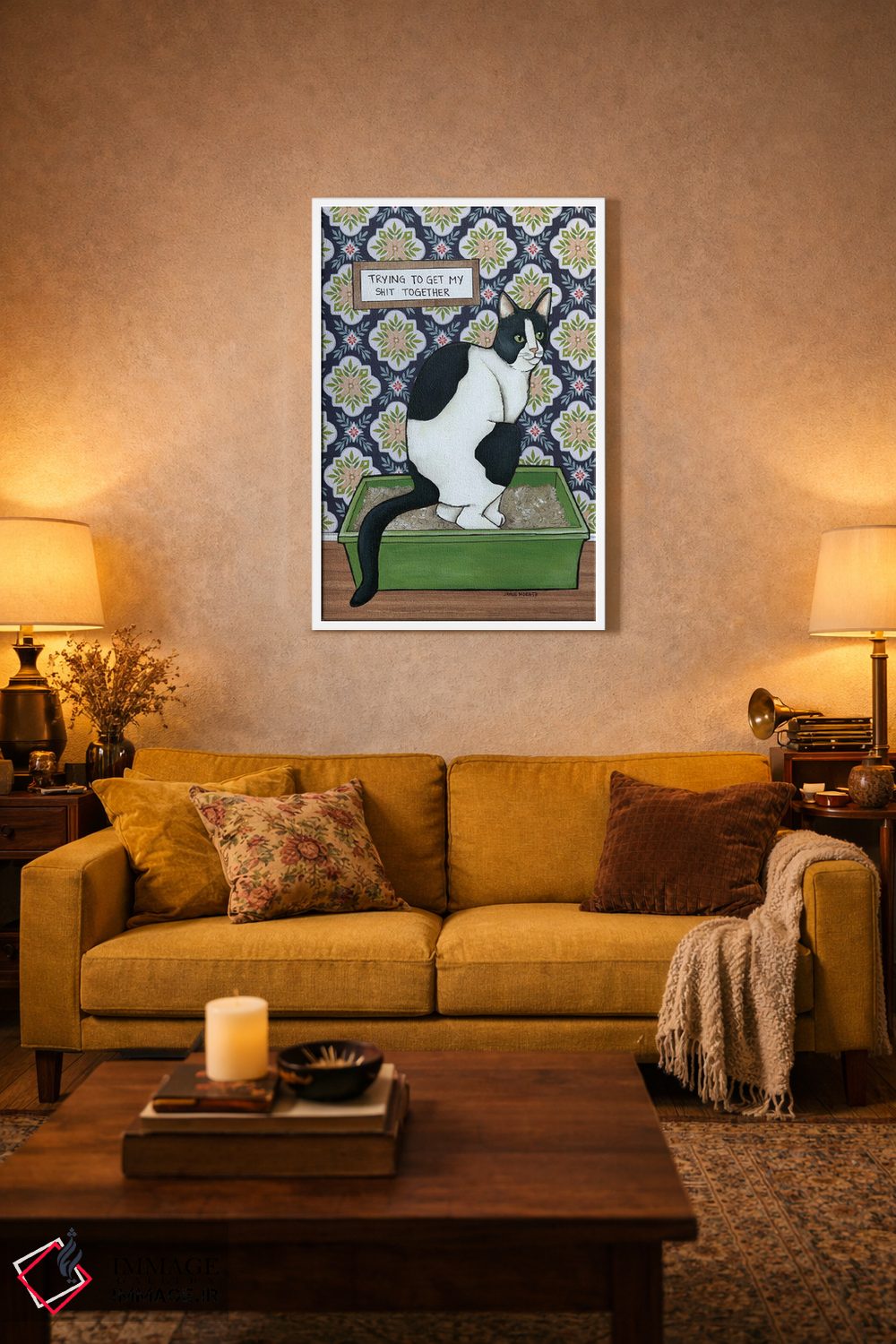 براساس پالت ترکیبی اثر، قاب تیک گرم (چوبی) پیشنهاد اول است و مشکی مات (فریم متوسط) مکمل. برای سفارشهای پروژهای با ابعاد و قابهای اختصاصی با ایماژ در تماس باشید.