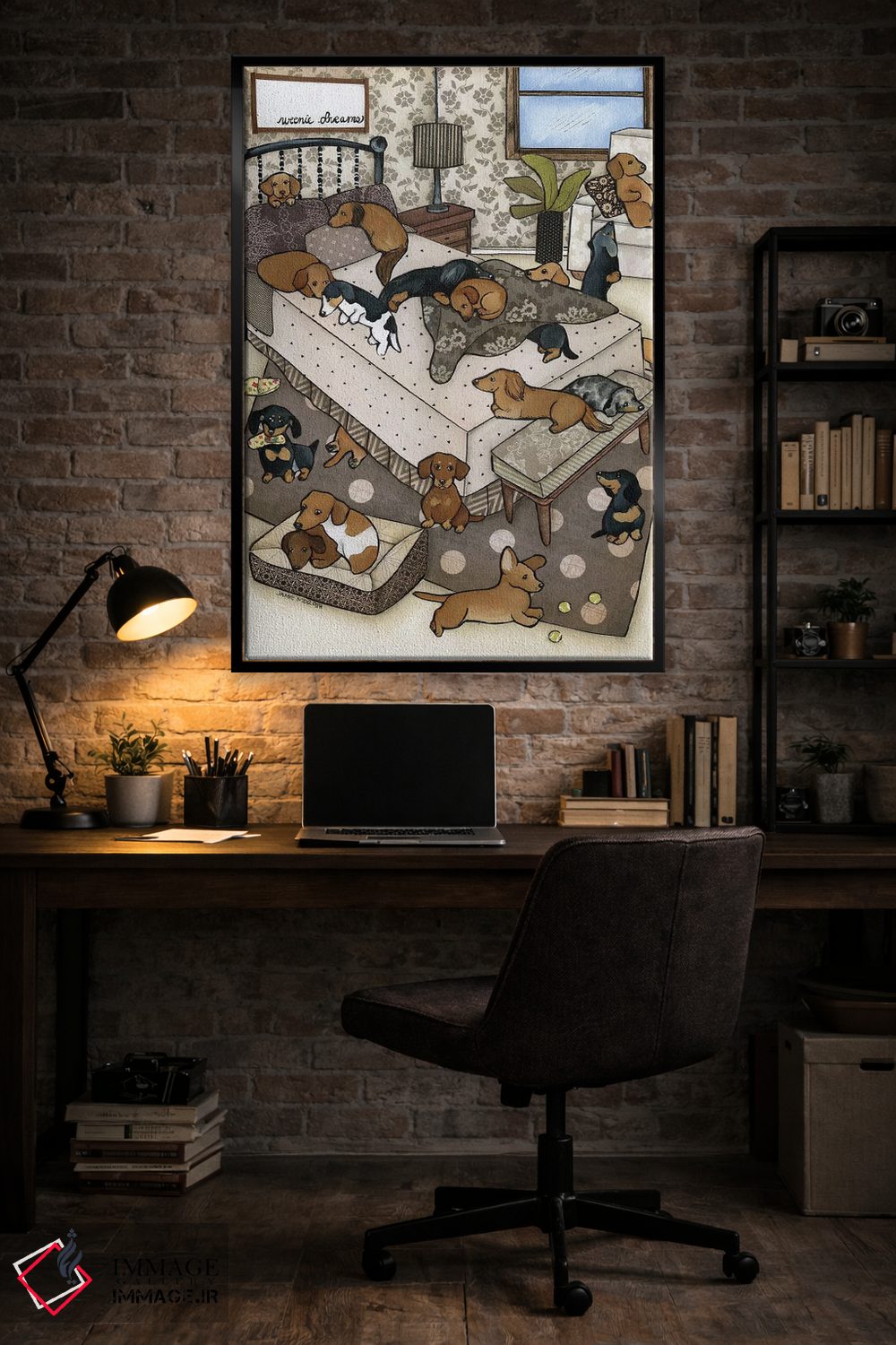 «رویاهای سوسیسی» اثرِ «جیمی موراث» میتواند بافت و جزئیات را طوری نشان بدهد که نگاه میماند؛ برای دیوار کنار میز کار پیشنهاد میشود. برای دیوار گالریوار هم گزینهٔ خوبیست.