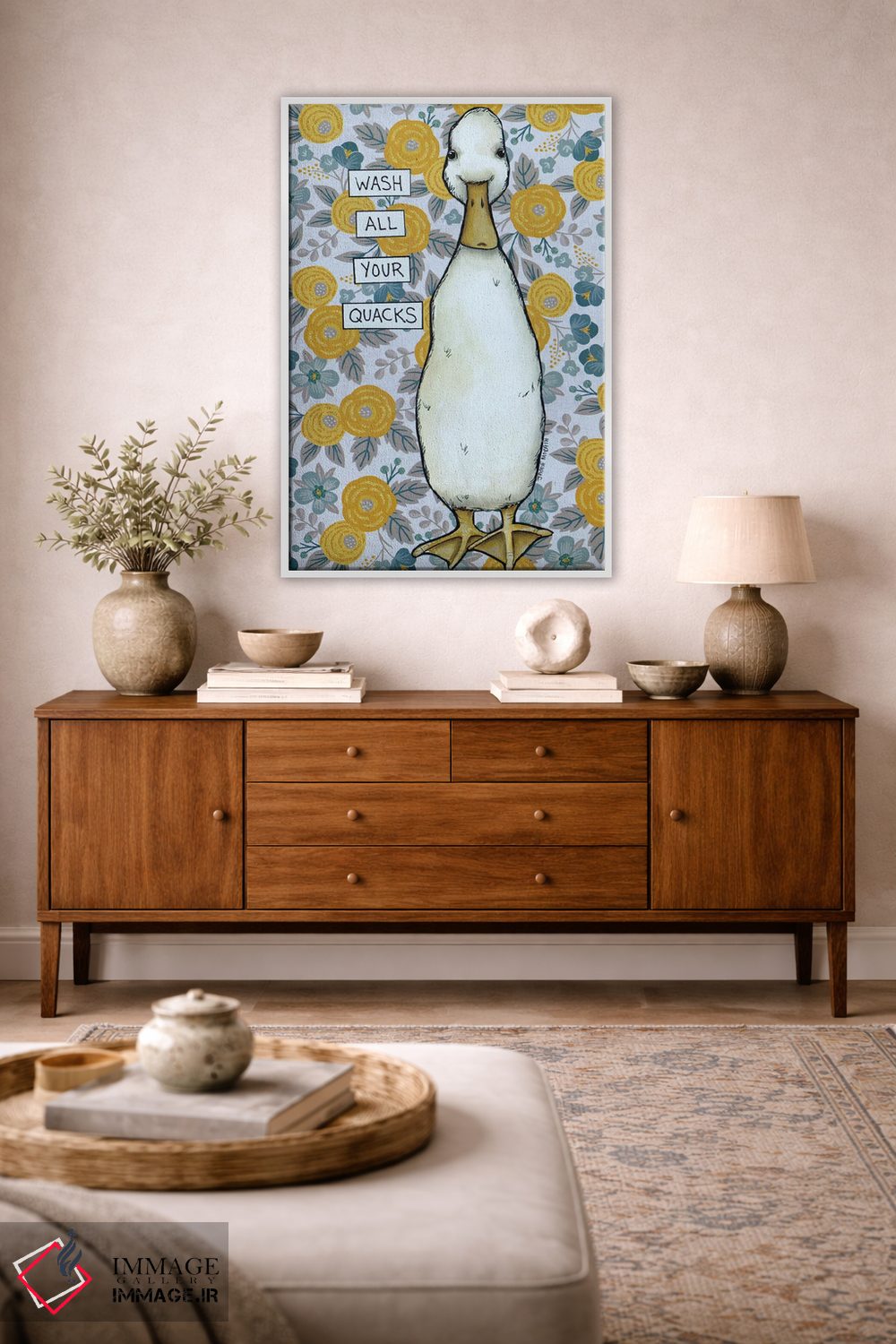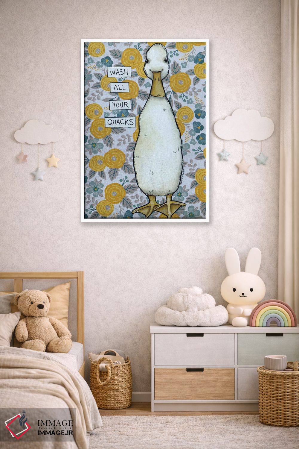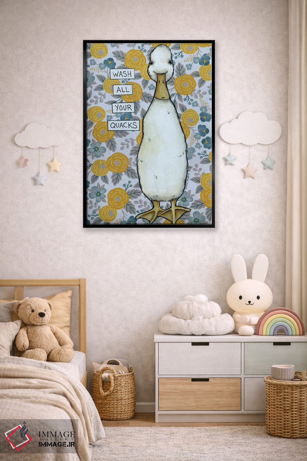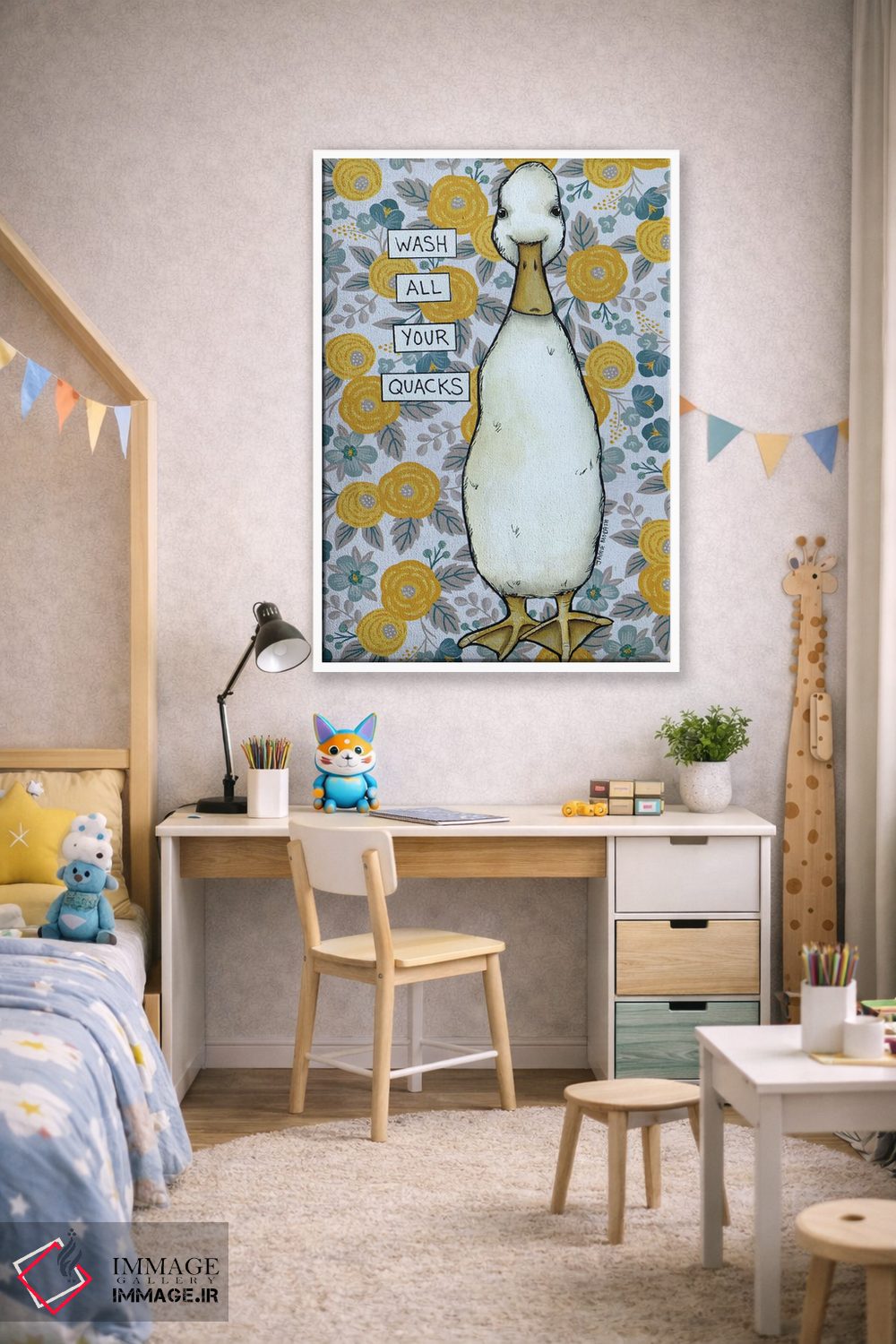 اگر به آثار حیوانات علاقه دارید، «قُرقُر (صدای اردک)» اثرِ «جیمی موراث» برای دکورهای مینیمال، یک نقطهٔ توجه میسازد، برای اتاق بازی یا گوشهٔ مطالعه گزینهٔ مناسبیست. به دیوار، قصه میدهد—اما قصهای آرام و شیک.