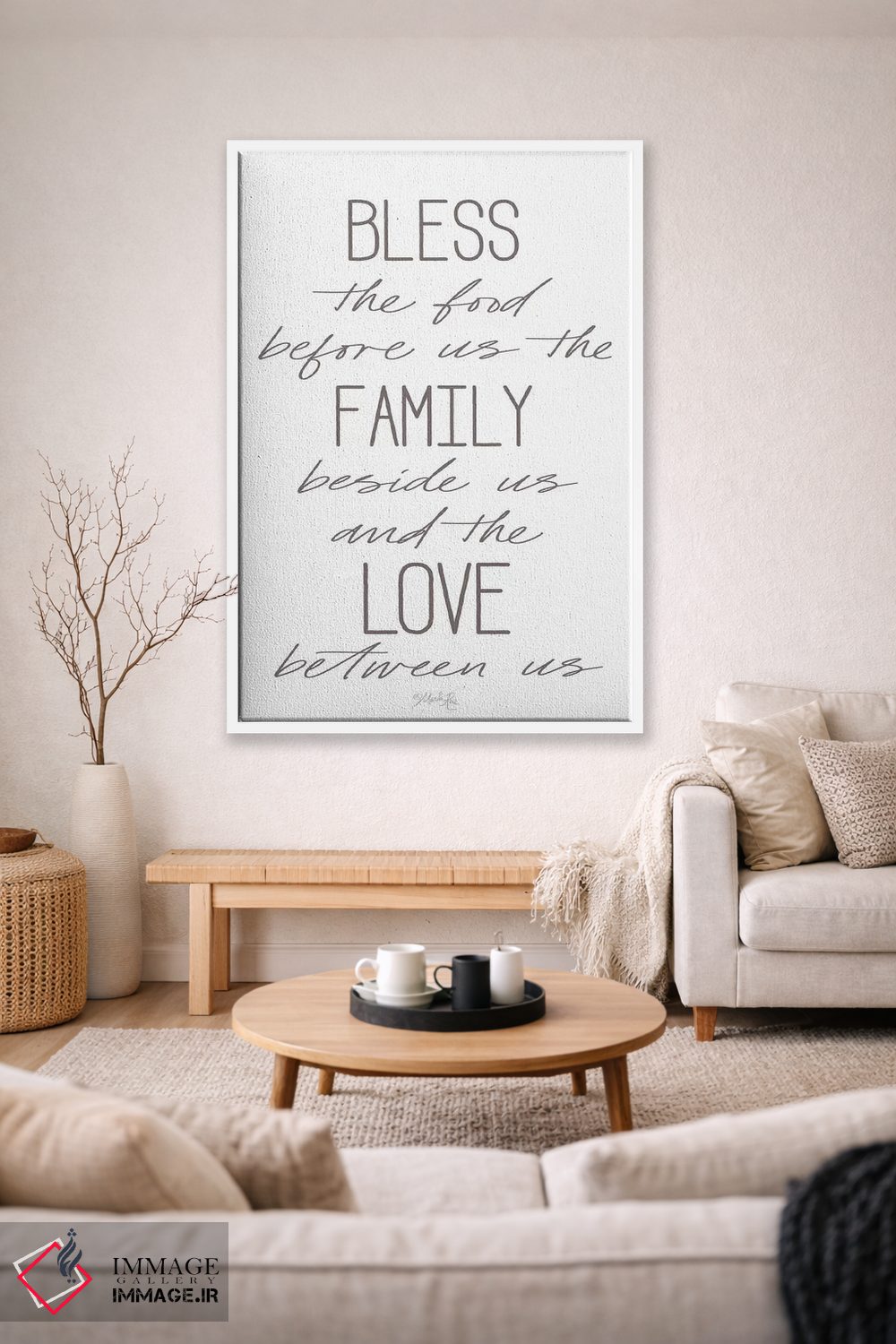 براساس پالت خنثی اثر، قاب مشکی مات (فریم باریک) پیشنهاد اول است و سفید مات (فریم باریک) مکمل. برای سفارشهای پروژهای با ابعاد و قابهای اختصاصی با ایماژ در تماس باشید.