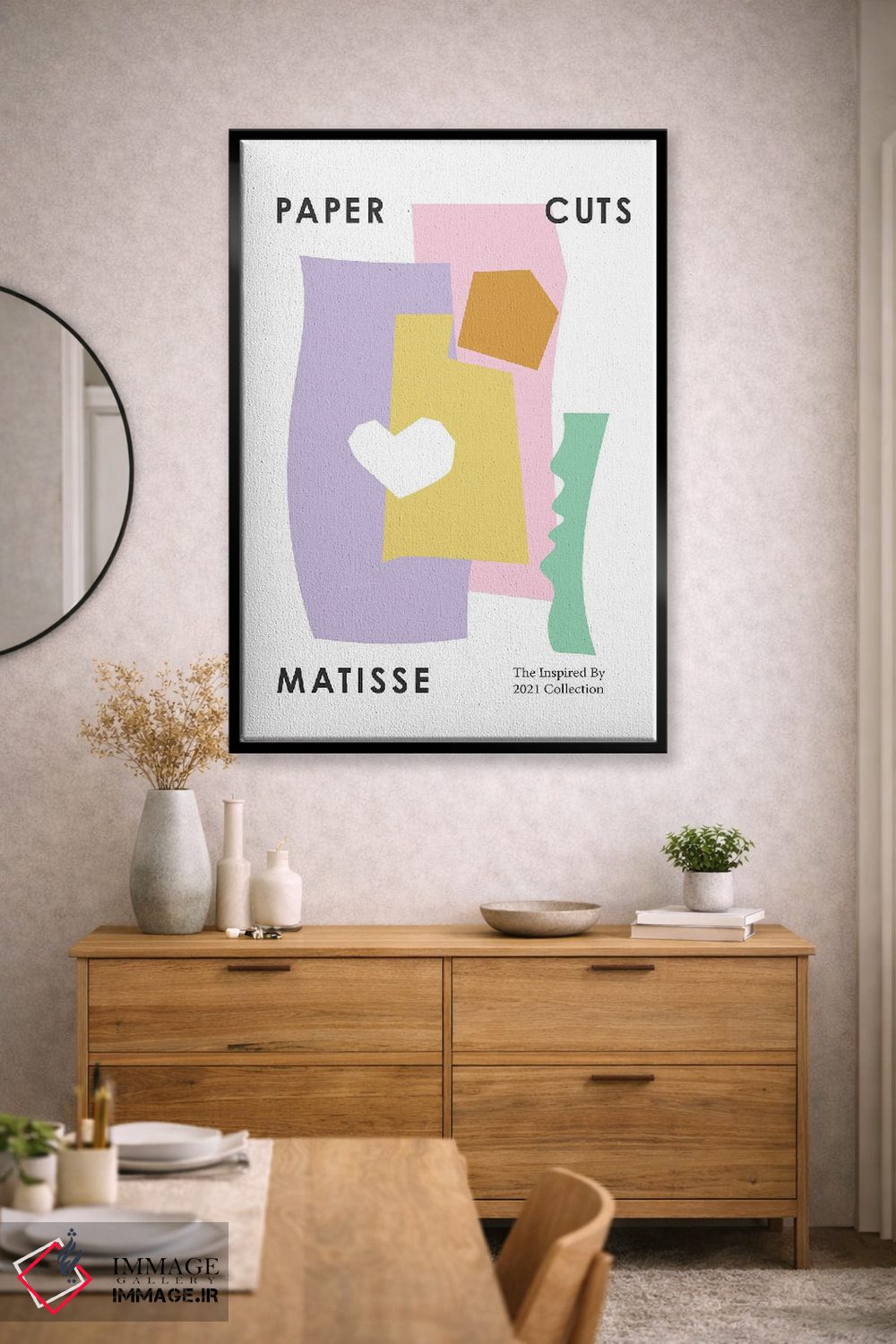 براساس پالت گرم اثر، قاب تیک گرم (چوبی) پیشنهاد اول است و مشکی مات (فریم متوسط) مکمل. برای سفارشهای پروژهای با ابعاد و قابهای اختصاصی با ایماژ در تماس باشید.