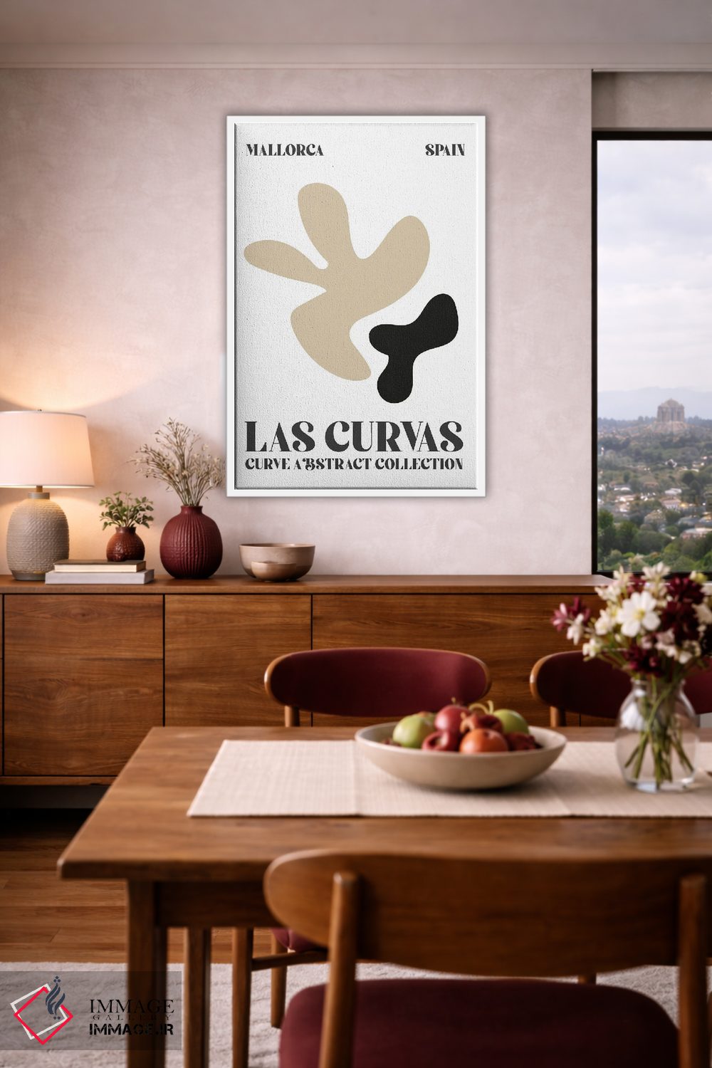 براساس پالت خنثی اثر، قاب بلوط روشن (چوبی) پیشنهاد اول است و استخوانی ملایم مکمل. برای سفارشهای پروژهای با ابعاد و قابهای اختصاصی با ایماژ در تماس باشید.
