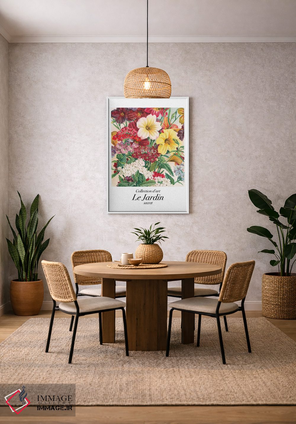 «هنر کلاسیک باغ؛ دستهگل» اثرِ «مامبو آرت استودیو (استودیوی هنری)» با حالوهوای این اثر و اجرای هنری، به فضا لطافت میدهد و برای کنار چوب روشن یا دیوارهای خنثی عالی مینشیند.