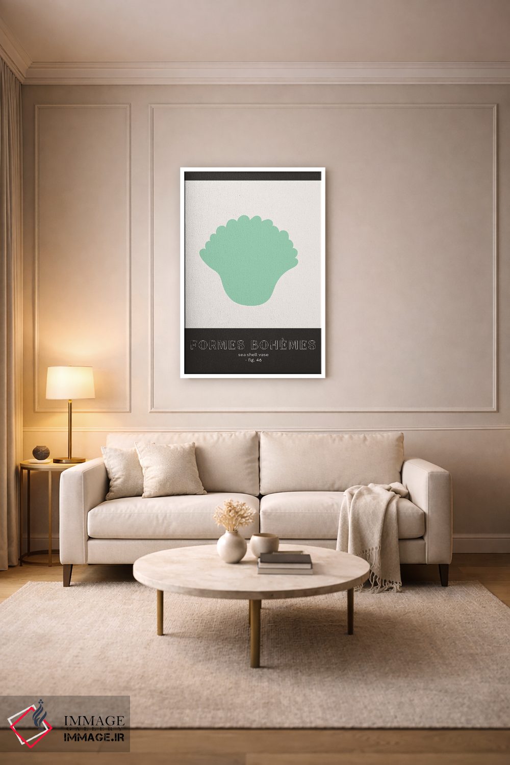 براساس پالت خنثی اثر، قاب مشکی مات (فریم باریک) پیشنهاد اول است و سفید مات (فریم باریک) مکمل. برای سفارشهای پروژهای با ابعاد و قابهای اختصاصی با ایماژ در تماس باشید.