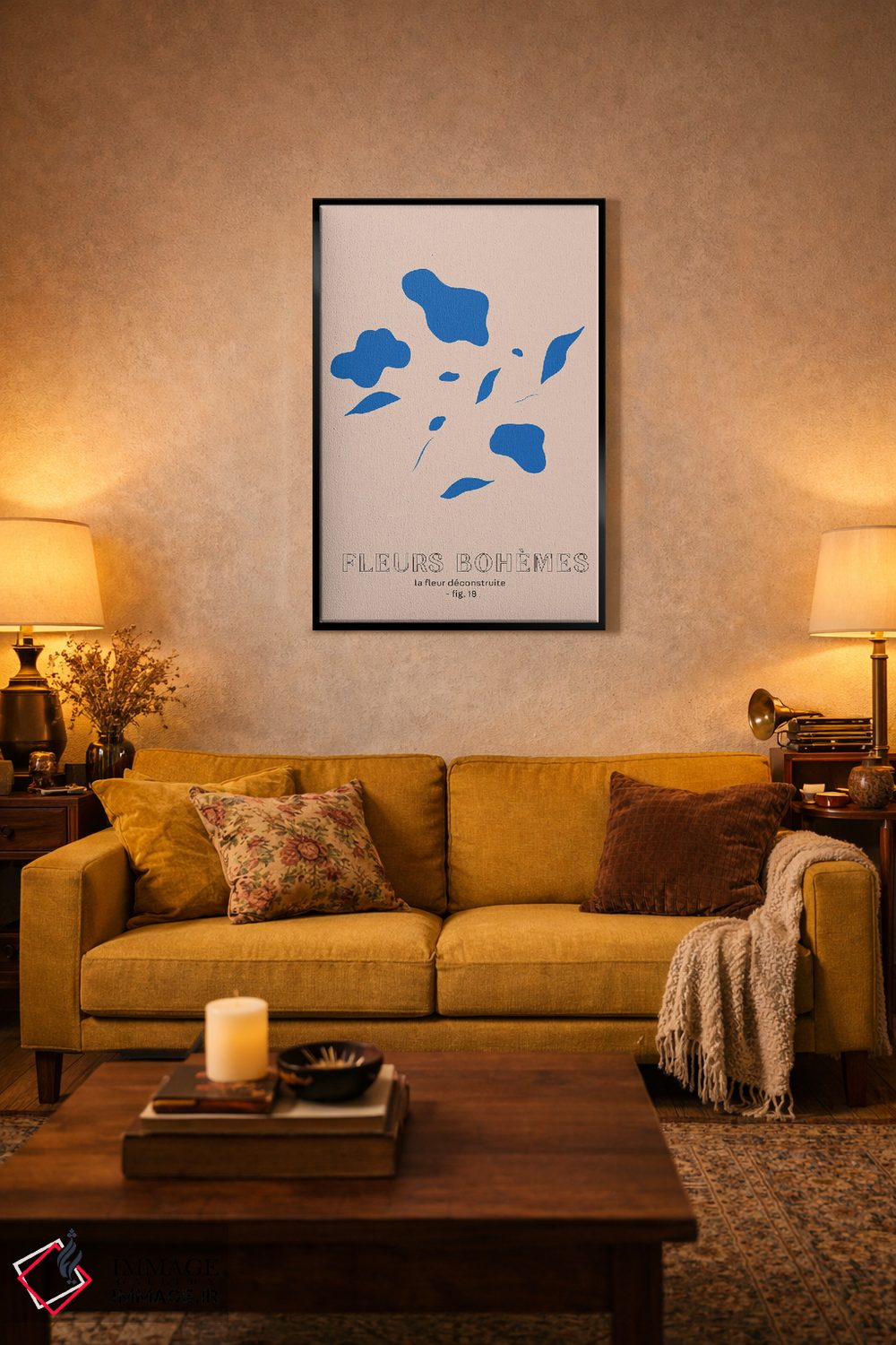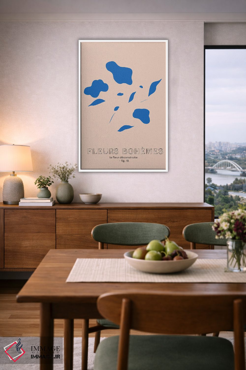 تابلو مینیمال گل های بوهمی؛ آبی اثر مامبو آرت استودیو