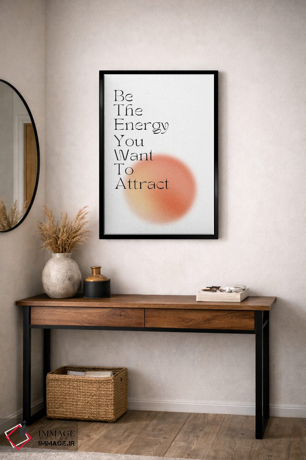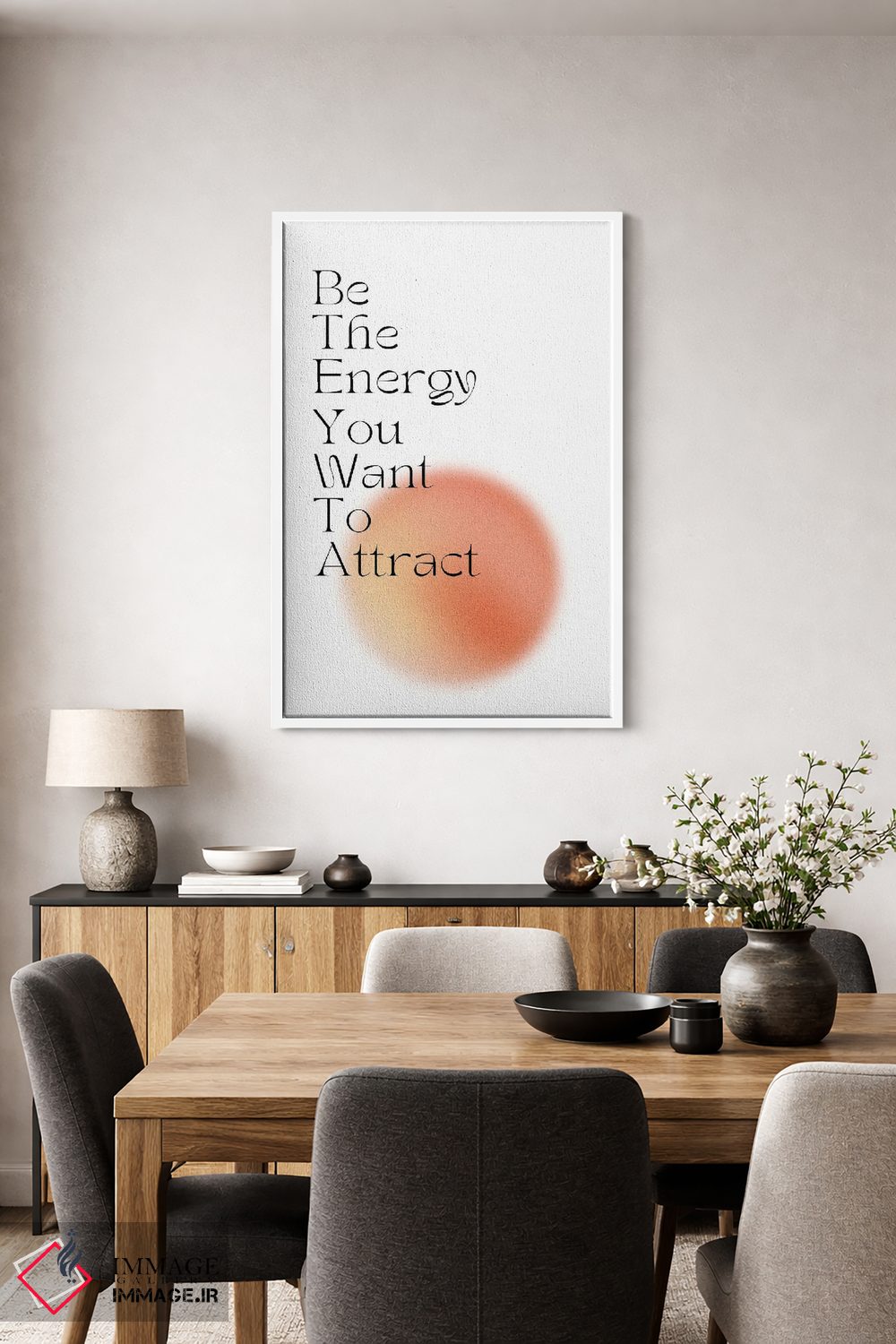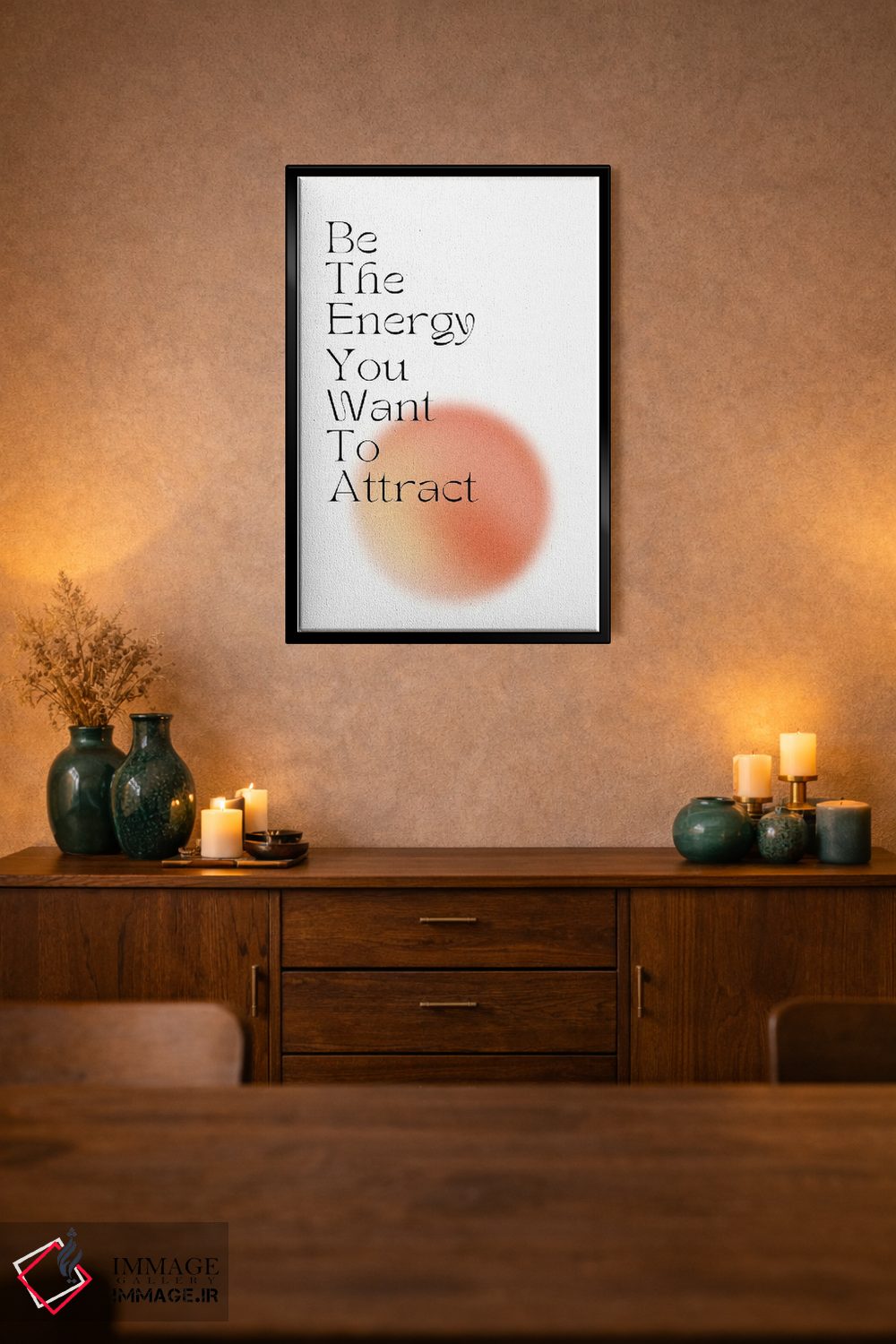 براساس پالت گرم اثر، قاب تیک گرم (چوبی) پیشنهاد اول است و مشکی مات (فریم متوسط) مکمل. برای سفارشهای پروژهای با ابعاد و قابهای اختصاصی با ایماژ در تماس باشید.