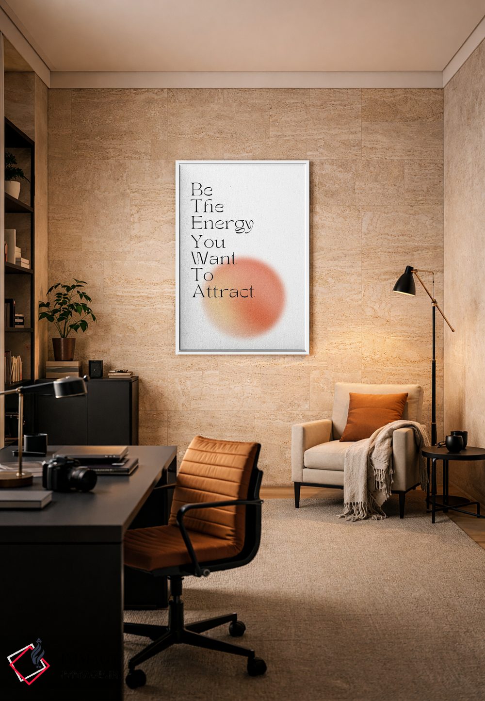 یک اثر تایپوگرافی/پیاممحور با حسی هماهنگ که فضا را مرتب و هدفمند نشان میدهد اثرِ «مامبو آرت استودیو (استودیوی هنری)».