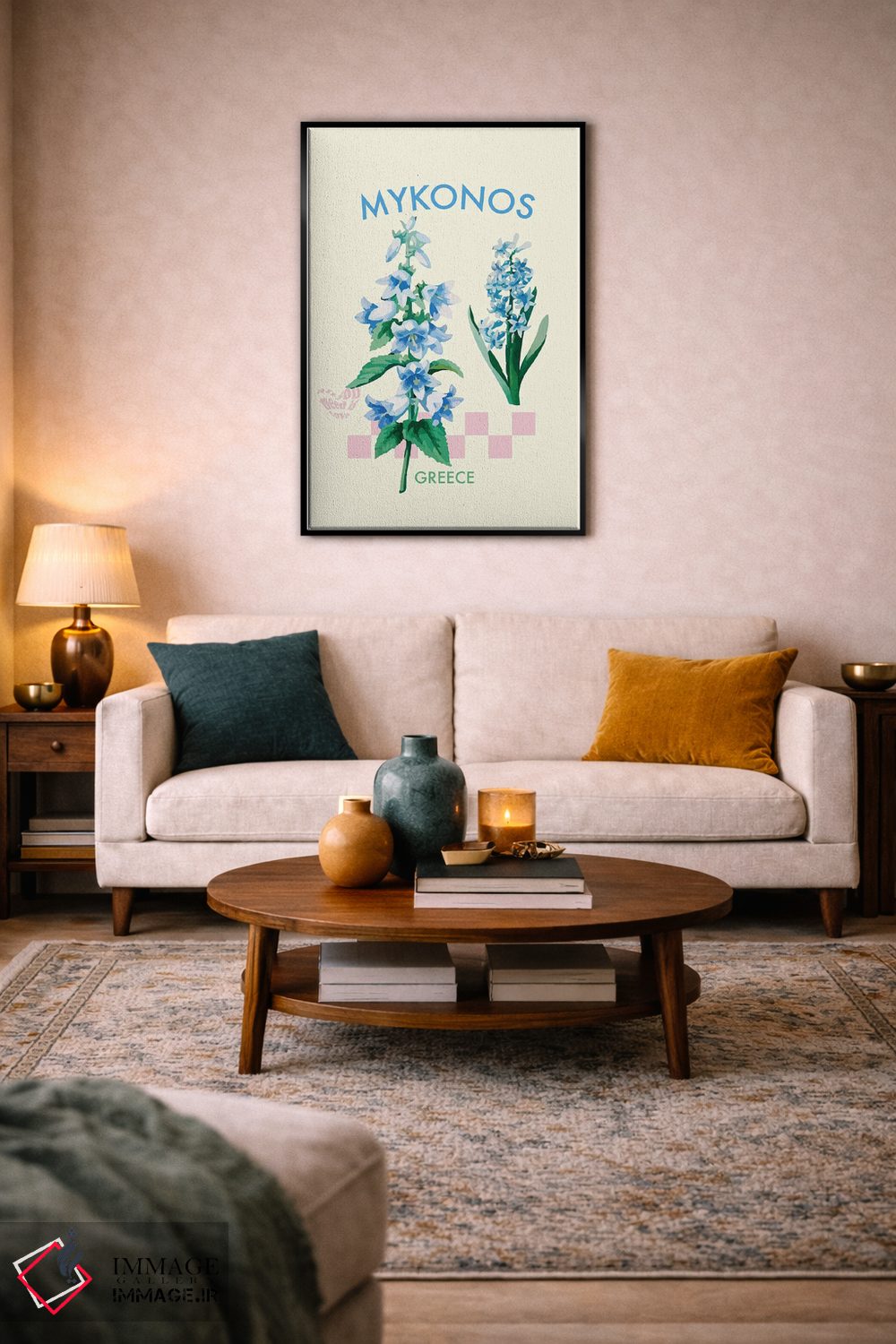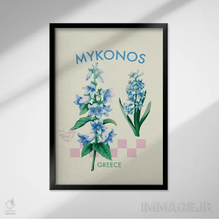 اگر به کارهای پرداختِ هنری با حالوهوای گیاهی علاقه دارید، «پوستر گل میکونوس یونان» اثرِ «مامبو آرت استودیو (استودیوی هنری)» انتخاب مطمئن و هماهنگپذیر و خوشسلیقهایست.