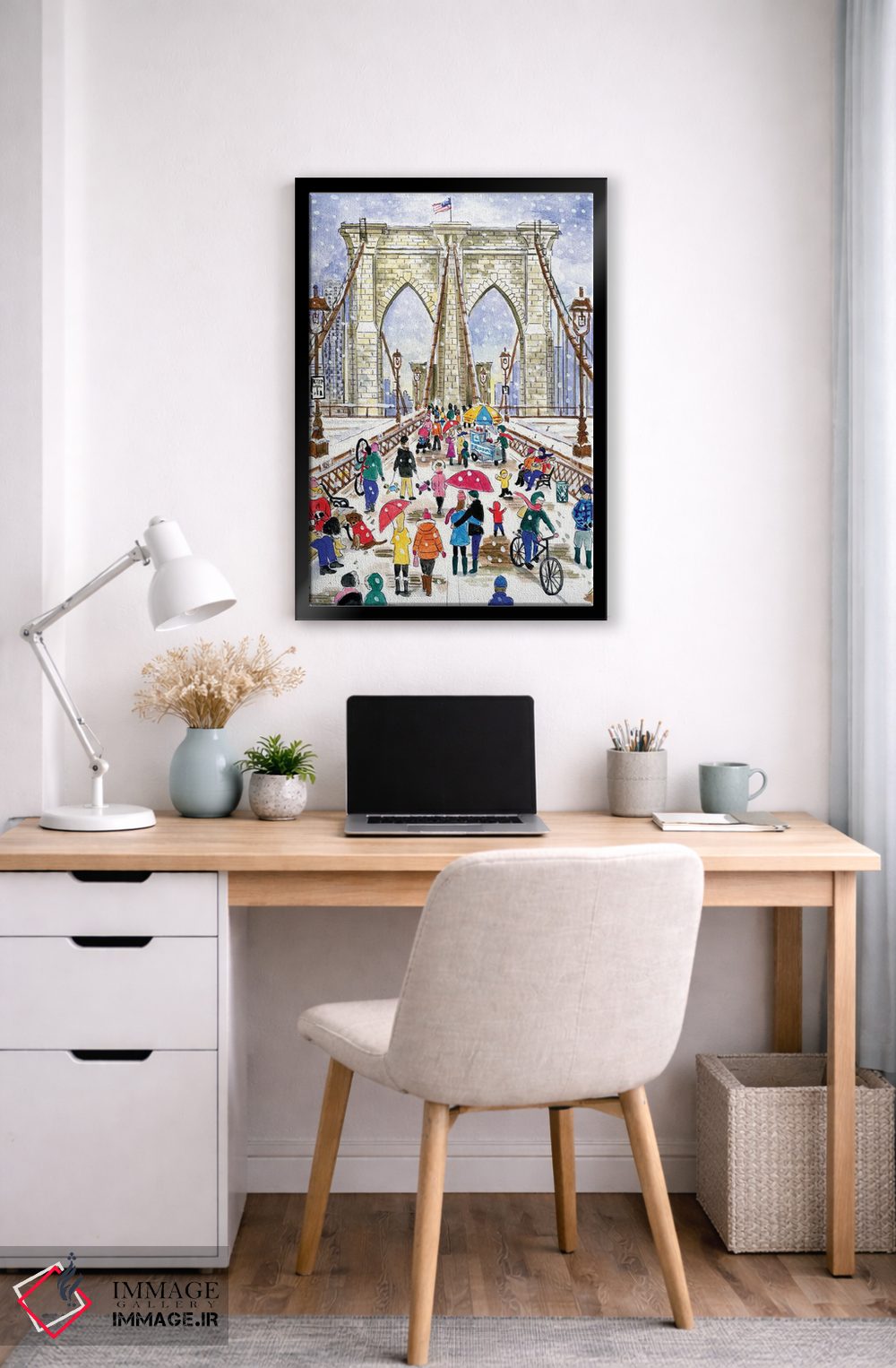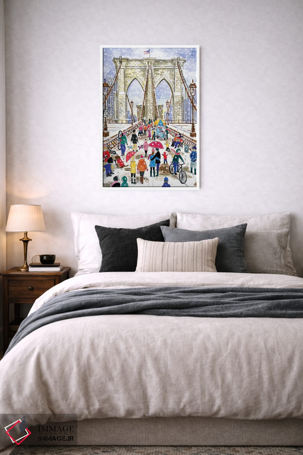 «پل بروکلین» اثرِ «مایکل استورینگس» بازیِ دقیقِ خط و هندسه است؛ در کنار بتن، فلز یا چوب عالی بنشیند؛ برای استودیوهای طراحی انتخابی خوشسلیقه است. با نورپردازی خطی، خطوط اثر خواناتر هم میشود.