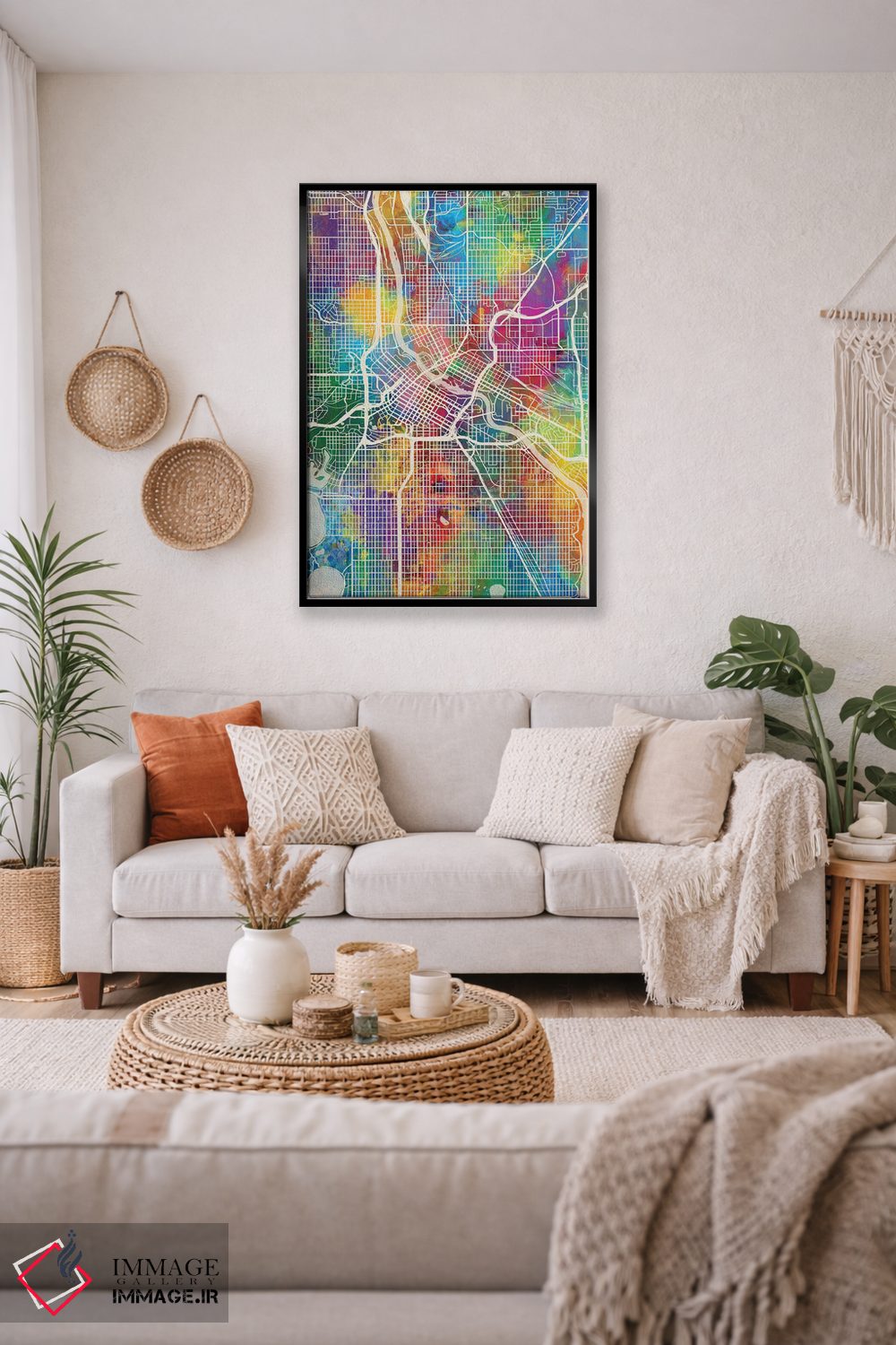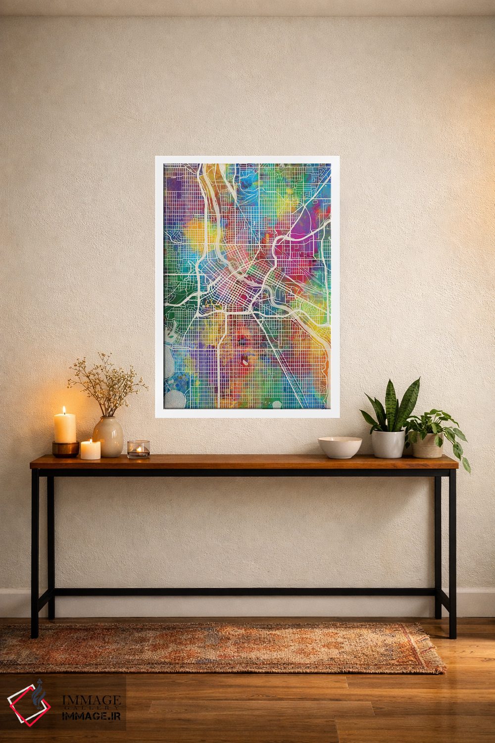 تابلو دکوراتیوِ «نقشه شهری مینیاپولیس، مینهسوتا (نسخه اول)» با حالوهوای این اثر؛ مناسب برای فضاهای مدرن، مینیمال و حتی صنعتی اثرِ «مایکل تامپست».