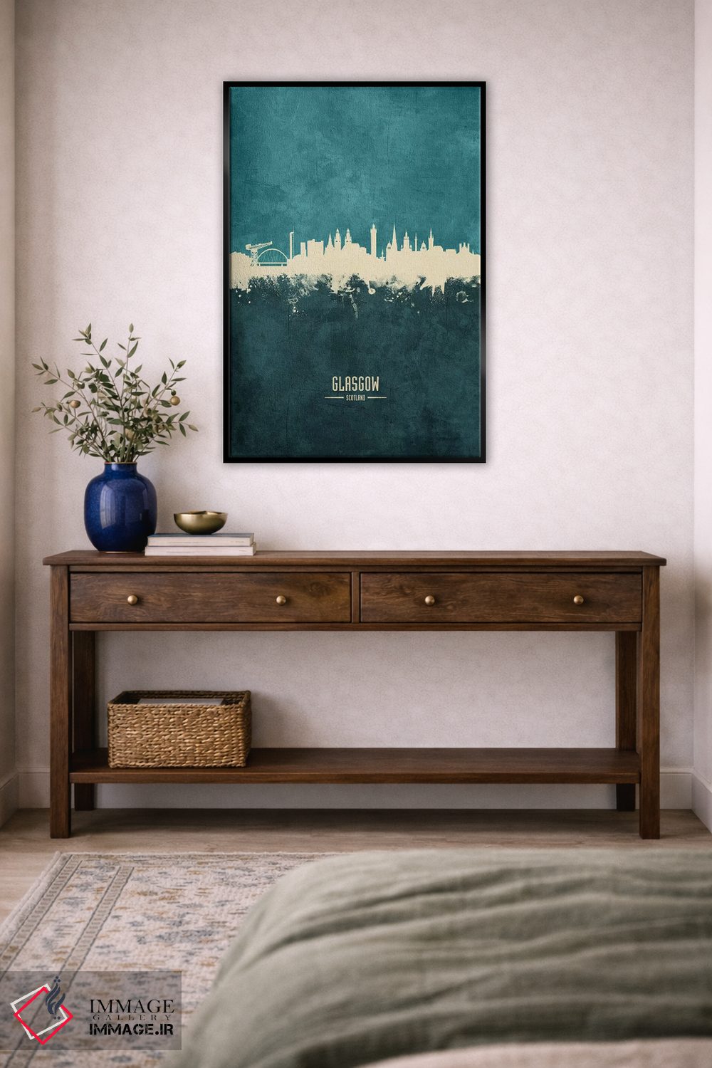 براساس پالت سرد اثر، قاب بلوط روشن (چوبی) پیشنهاد اول است و استخوانی ملایم مکمل. برای سفارشهای پروژهای با ابعاد و قابهای اختصاصی با ایماژ در تماس باشید.