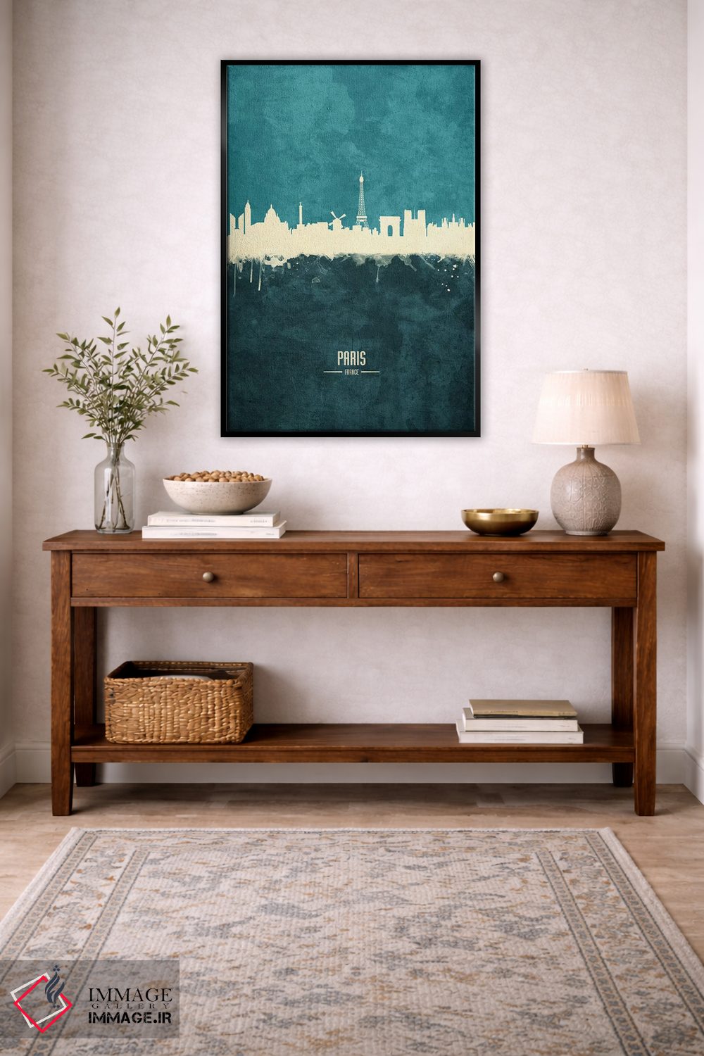 براساس پالت سرد اثر، قاب بلوط روشن (چوبی) پیشنهاد اول است و استخوانی ملایم مکمل. برای سفارشهای پروژهای با ابعاد و قابهای اختصاصی با ایماژ در تماس باشید.